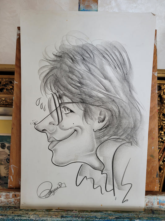 Karikatur, Zeichnung auf Papier Handsigniert Impression eines Portraits