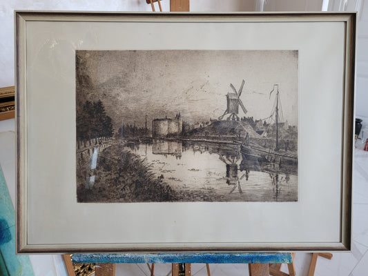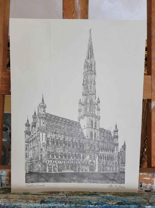 Original Radierung des Rathauses in Brüssel, Handsigniert unten Rechts