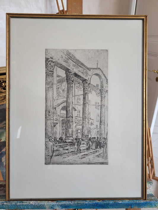 Original Radierung eines Römischen Herrschaftsgebäudes 55x40cm