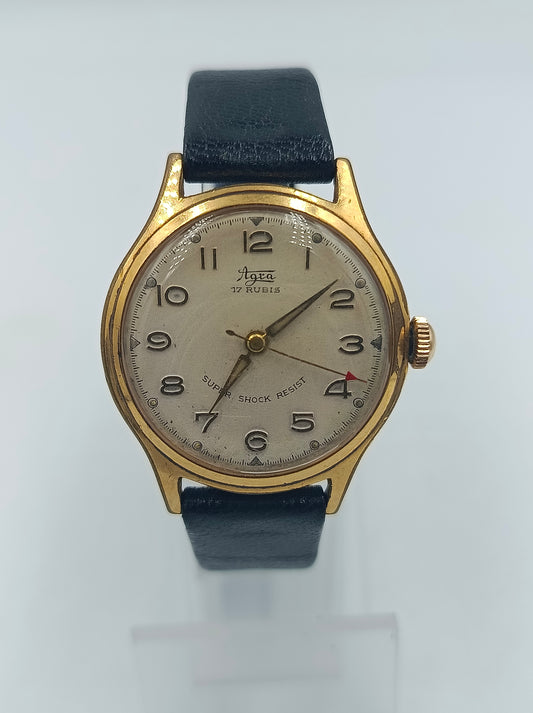Agra 17 Rubis Super Shock Resist Handaufzug Goldfarben Vintage Herren Uhr
