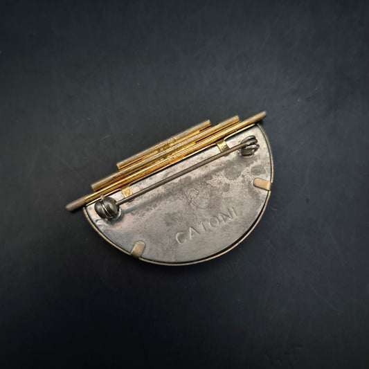 Abstrakte Vintage Brosche – Halbmond mit Schilf-Motiv und Goldstreben
