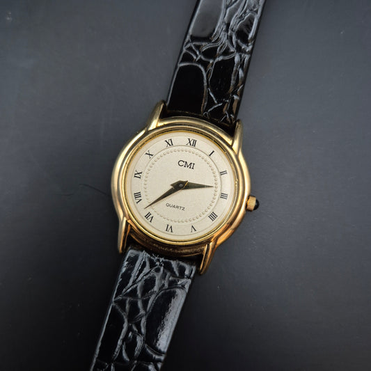 CMI Quarz Uhr im Vintage-Stil – Goldgehäuse mit römischen Zahlen