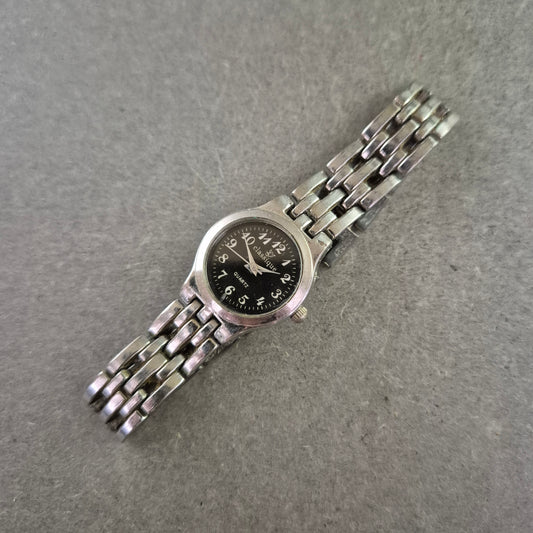 Classique Damen Quarz Armbanduhr – Edelstahl mit schwarzem Zifferblatt