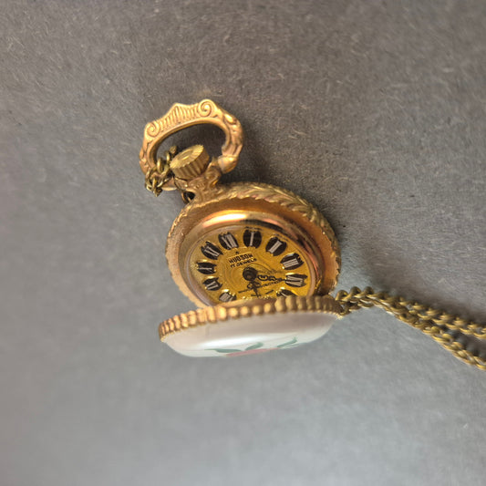 Antike Halsketten-Taschenuhr – Vergoldetes Design mit Rosenmotiv