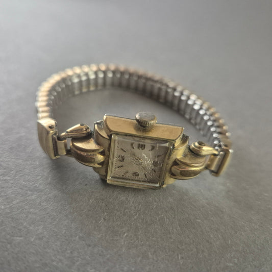 Antike Damen Uhr mit 10 Rubis – Goldton & Rechteckgehäuse
