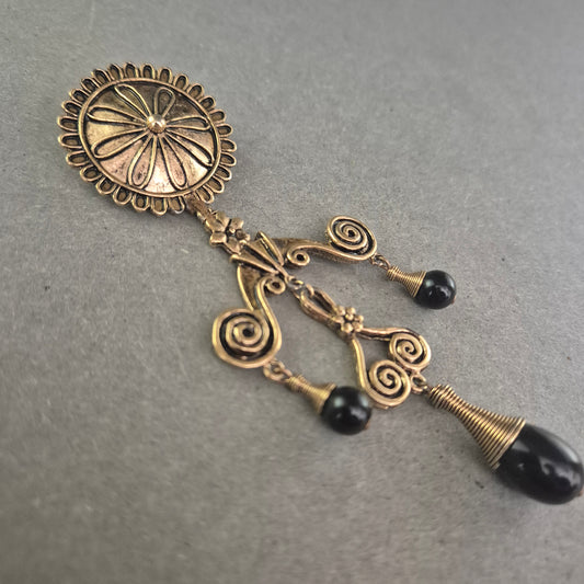 Antike Brosche im viktorianischen Stil – Bronzeoptik mit Onyxperlen