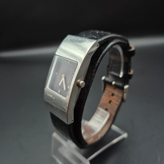 Ausgefallene Fossil Herren Uhr Rechteckdesign mit Lederarmband