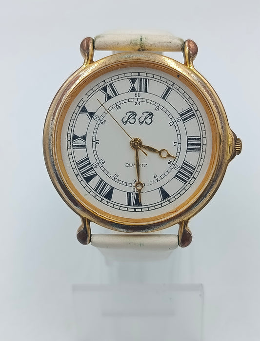 BB Damen Armbanduhr Goldoptik mit Weißem Armband Vintage
