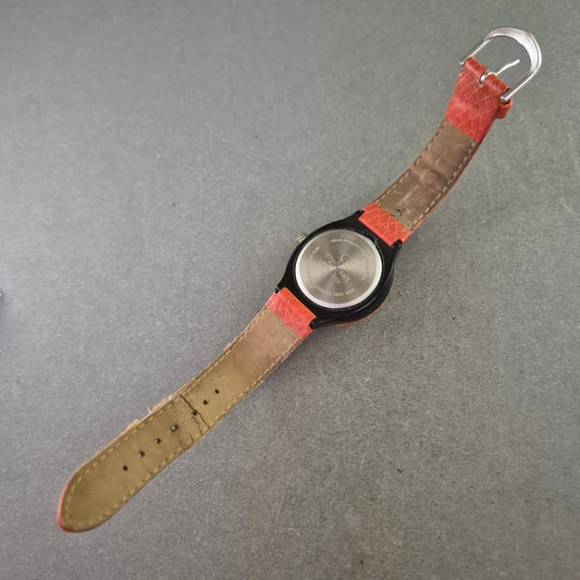Ausgefallene Herren Uhr – Quarzwerk mit orangefarbenem Design