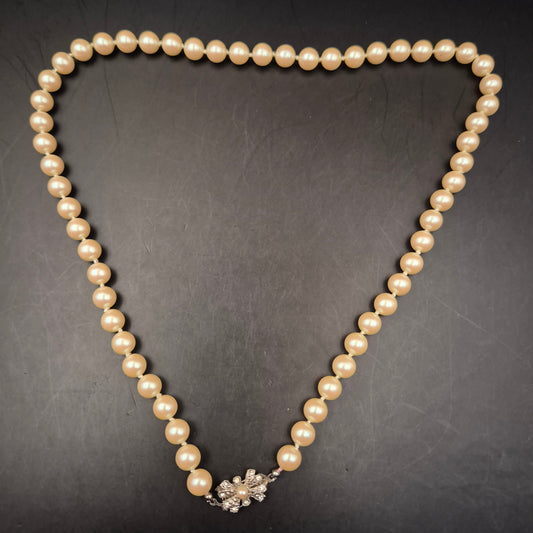 Elegante Vintage Perlenkette mit Strass-Blütenverschluss
