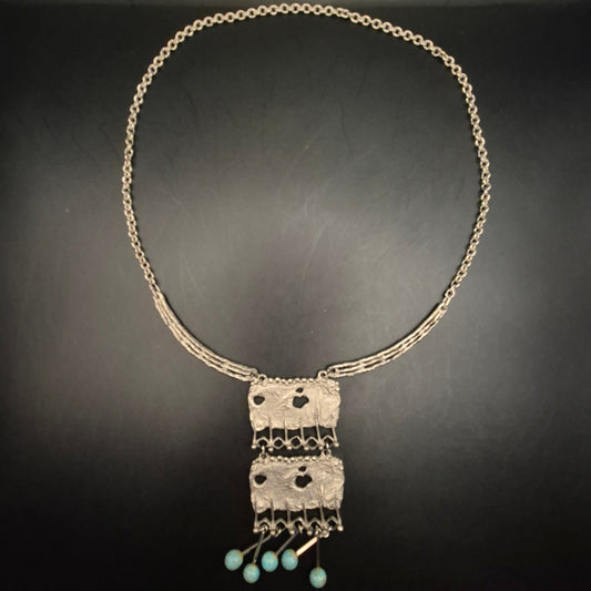 Vintage Halskette mit markantem Anhänger & Türkis-Imitat Perlen
