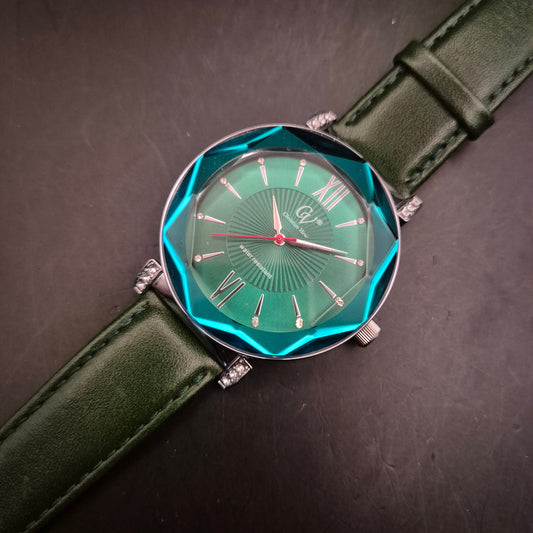 Christian View Damen Armbanduhr mit facettiertem Glas & grünem Zifferblatt