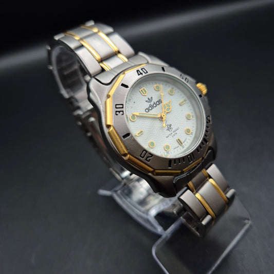 Vintage Adidas Quarz Armbanduhr, Bicolor, Japan Movt, Sport-Stil