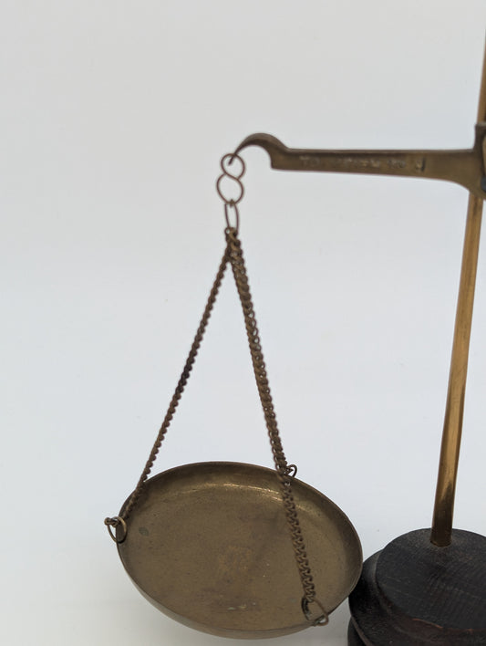 Messingwaage mit Holzsockel Kleine Präzisionswaage Dekoration Vintage