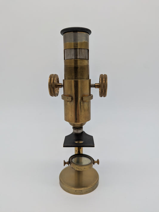 Antikes Mikroskop Messing mit Spiegel und Objektiv Vintage