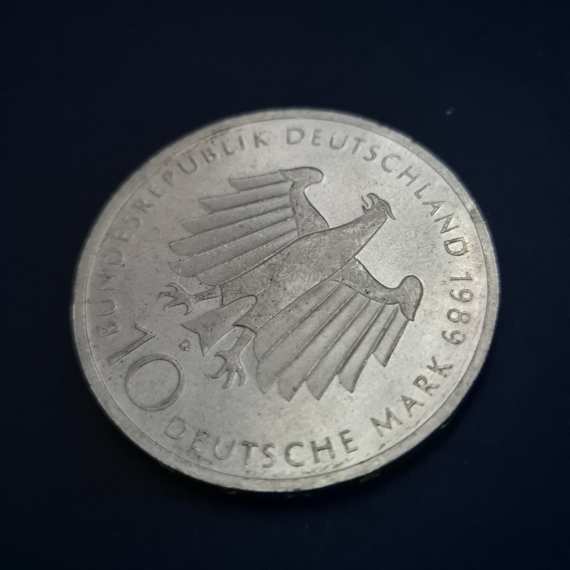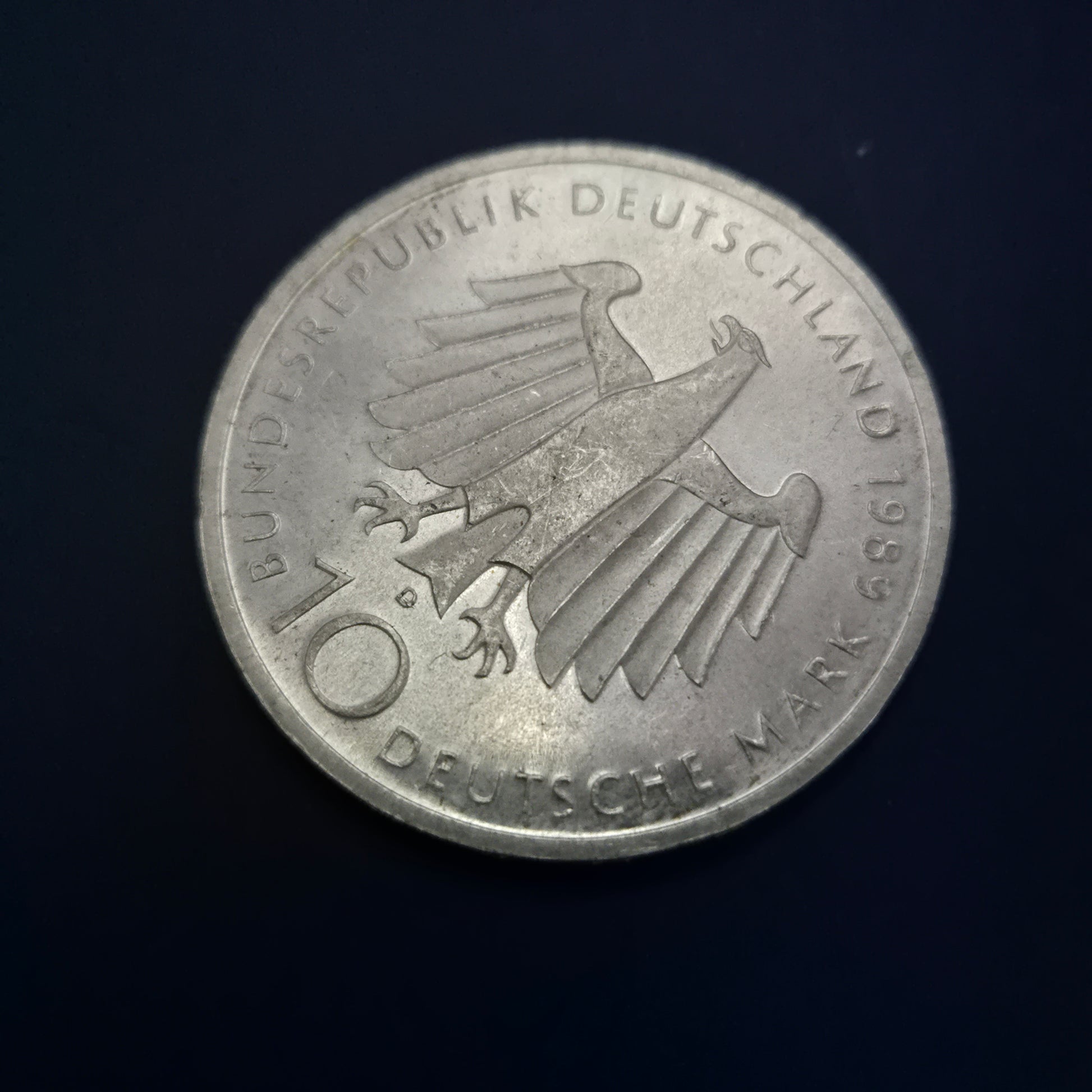 Diese 10 Deutsche Mark Gedenkmünze aus dem Jahr 1989 wurde anlässlich des 2000-jährigen Stadtjubiläums von Bonn geprägt. Auf der Vorderseite zeigt sie das Bundesadler-Motiv und die Aufschrift "Bundesrepublik Deutschland 1989", auf der Rückseite ein modernes Architekturmotiv mit dem Schriftzug "2000 Jahre Bonn". Die Münze besteht aus Sterlingsilber (625/1000) und ist ein gefragtes Sammlerstück aus der Zeit vor der Euro-Einführung.