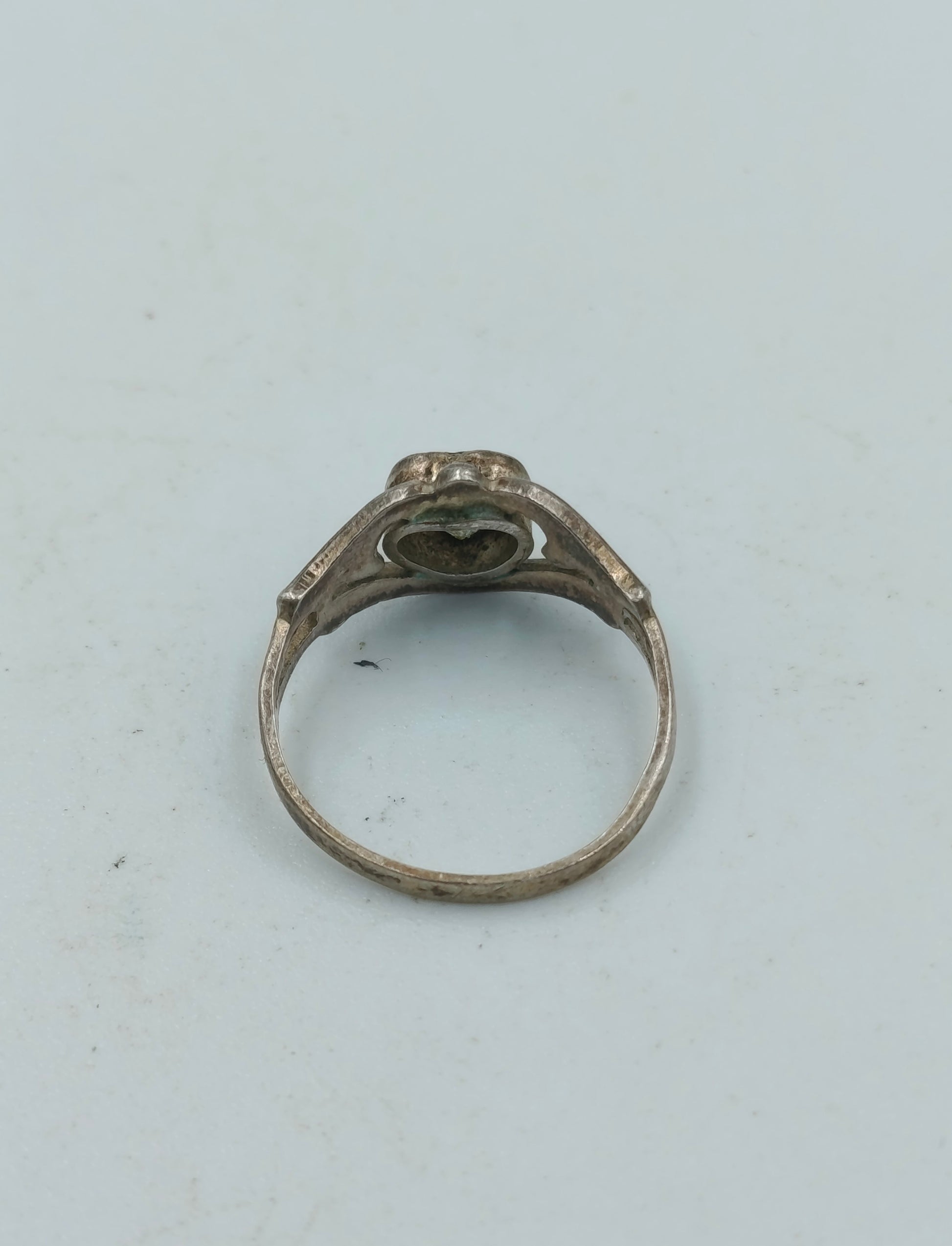 Wunderschöner, filigraner Vintage-Ring aus 835er Silber mit einem zarten Herzmotiv in der Mitte. Der Ring besticht durch seine feinen Verzierungen und den romantischen Look – perfekt für Sammler oder Liebhaber von antikem Silberschmuck.