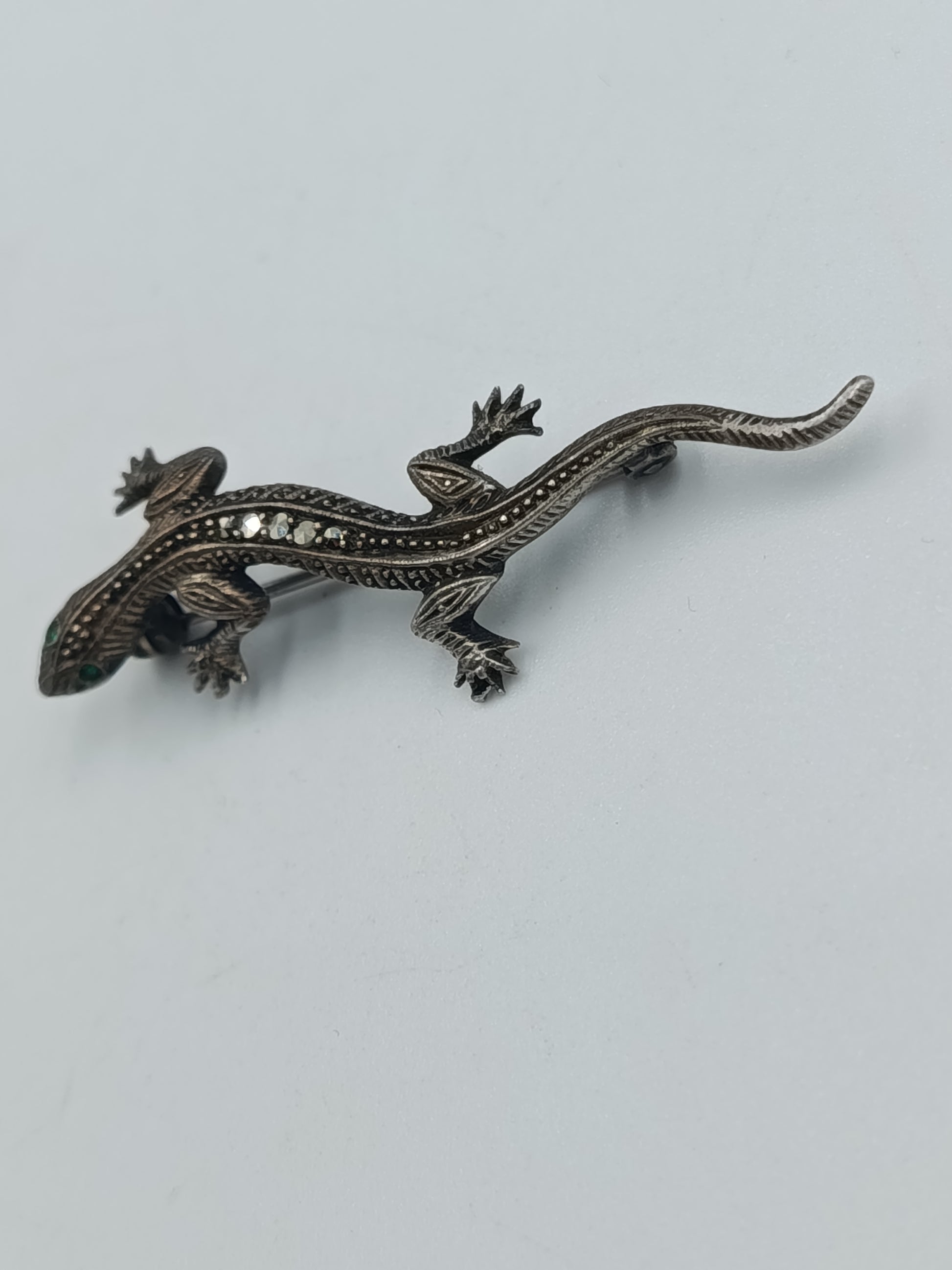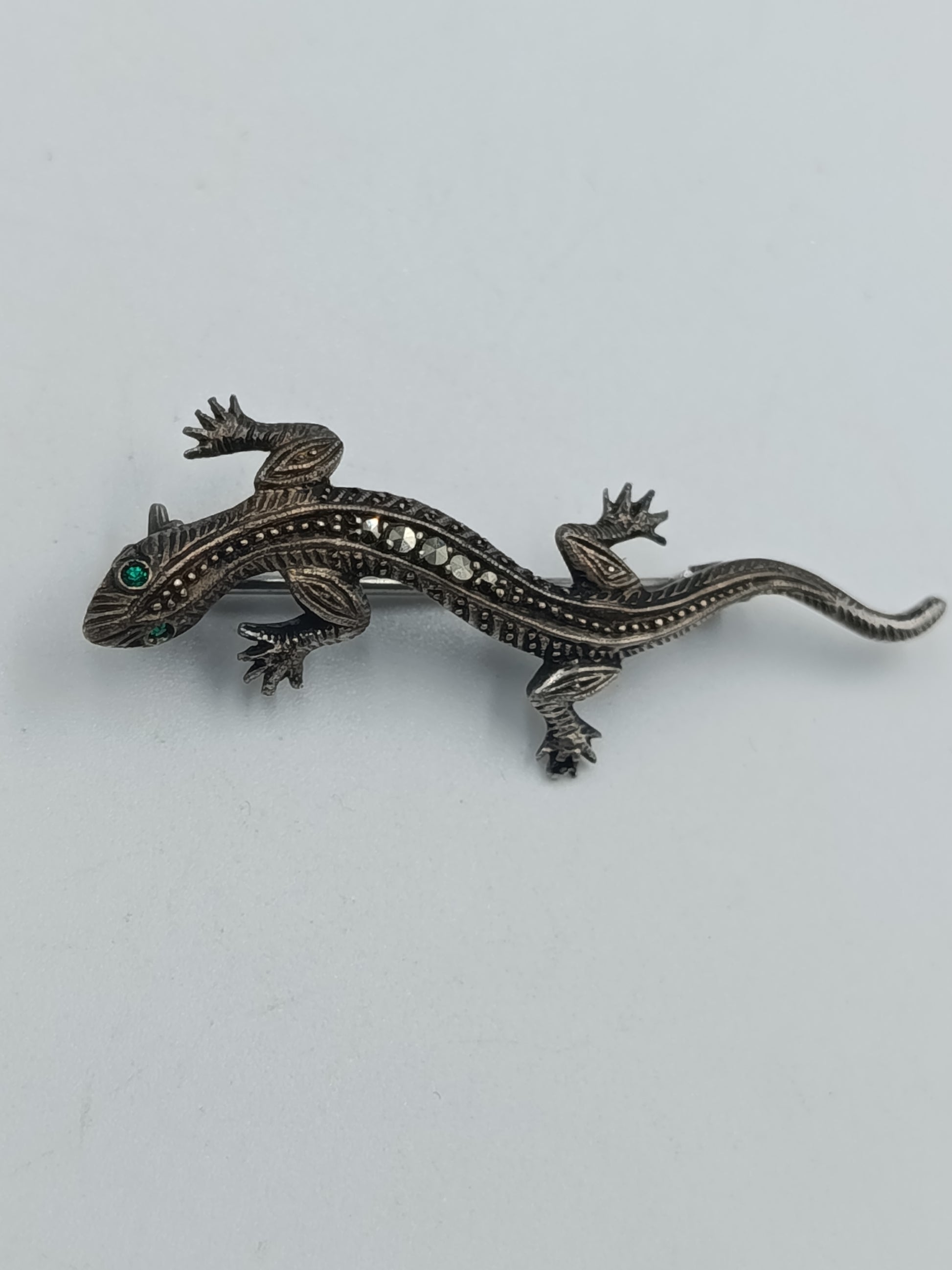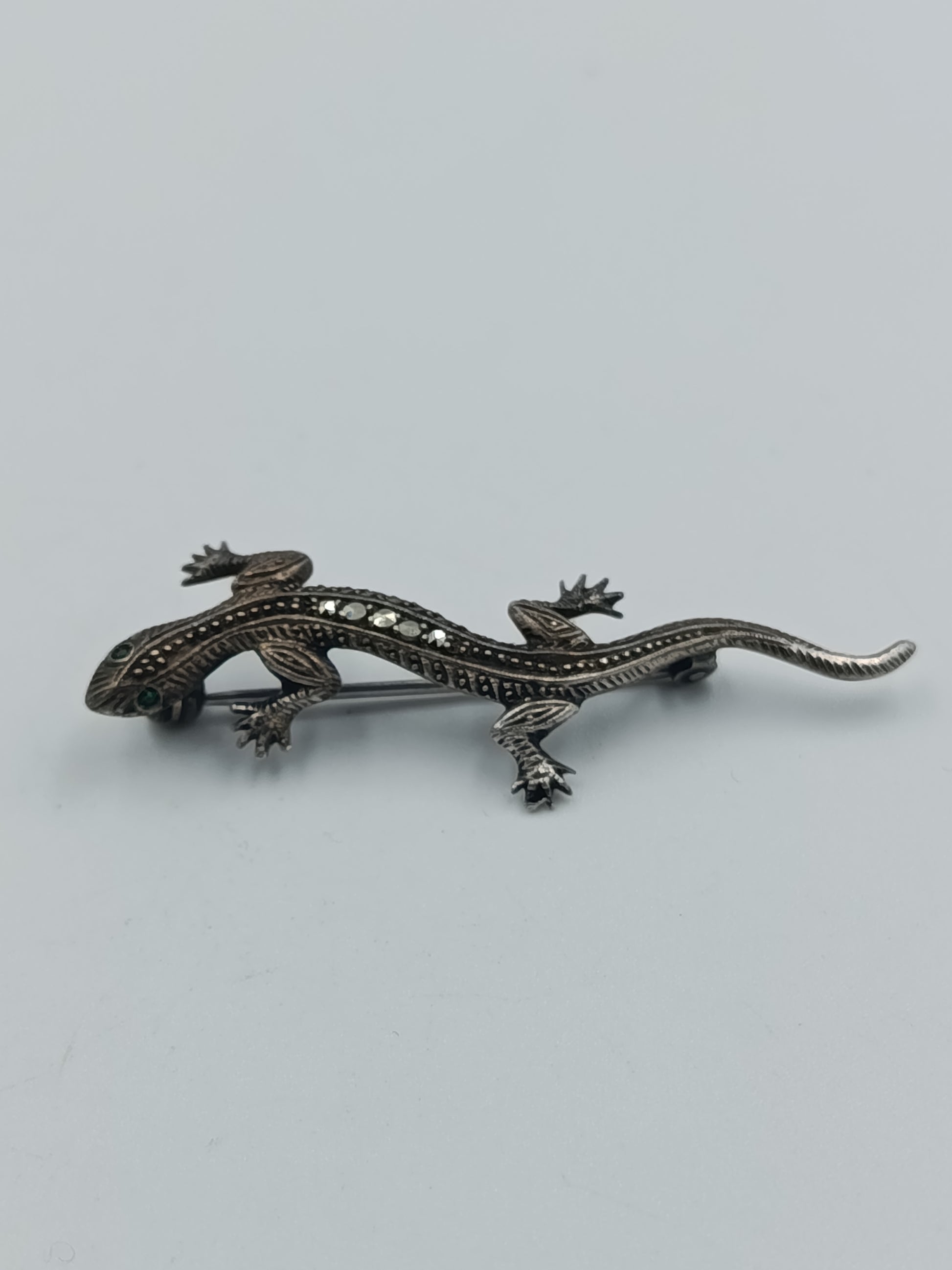 835er Silber Echsen-Brosche mit Markasiten