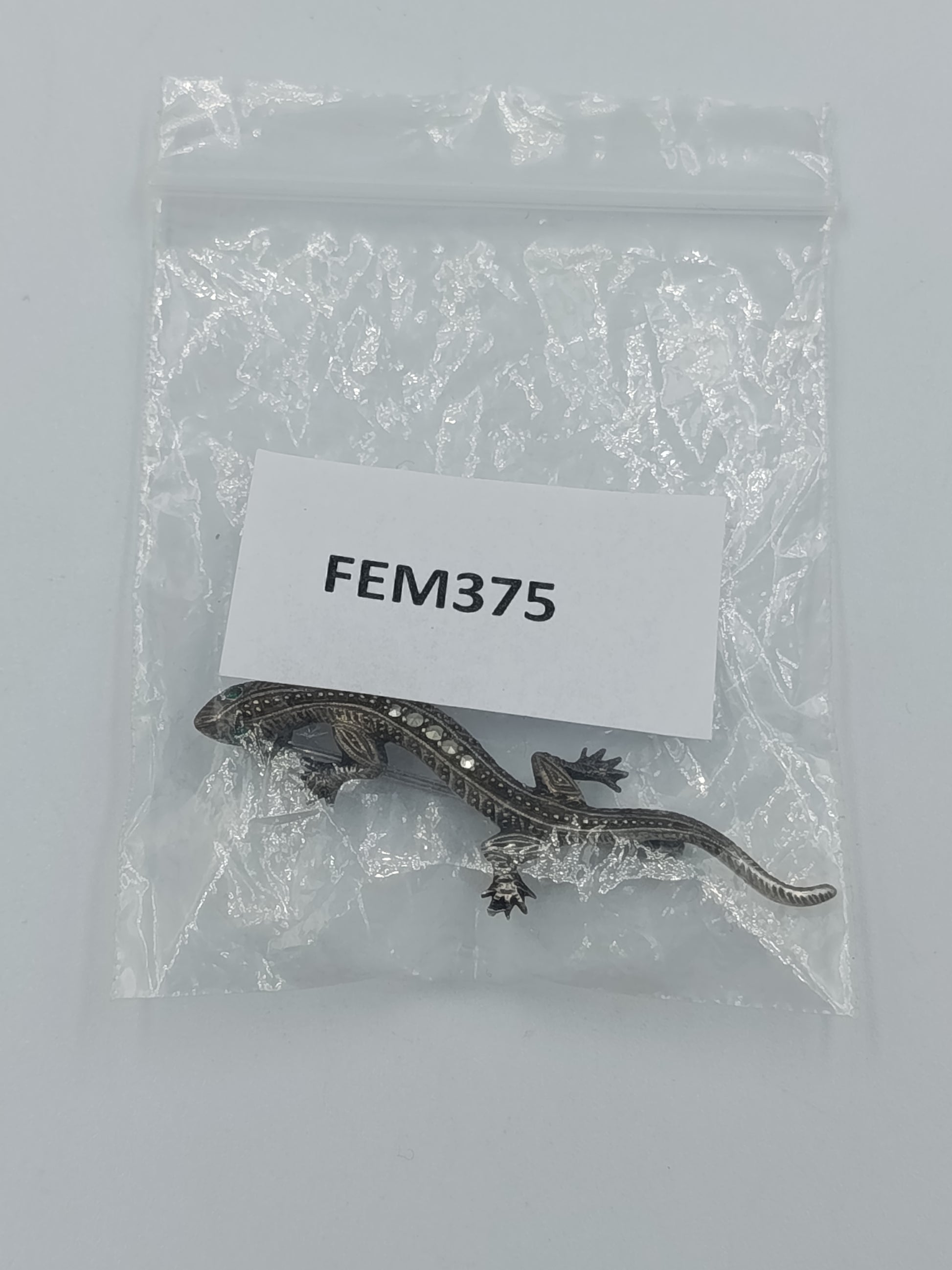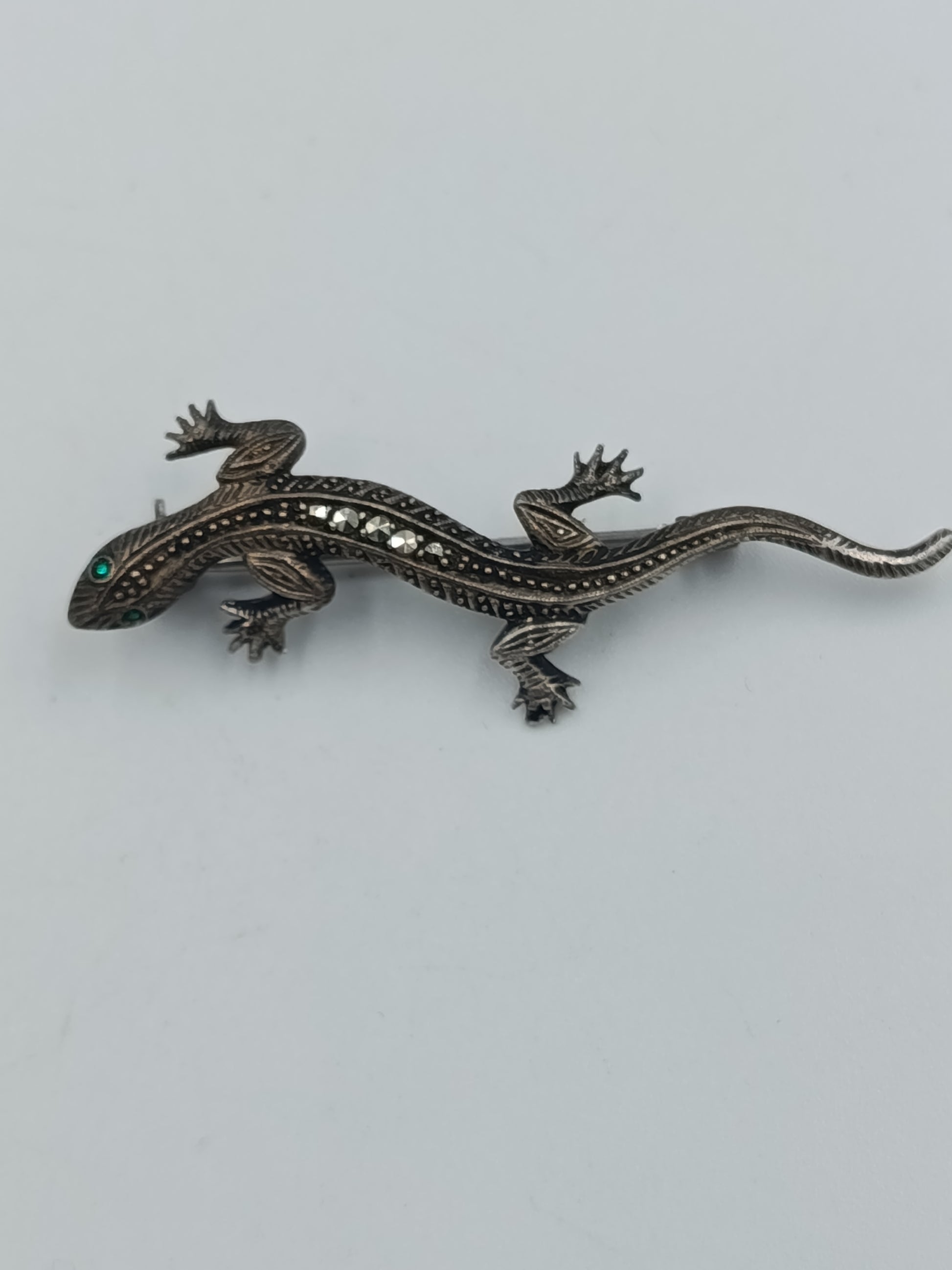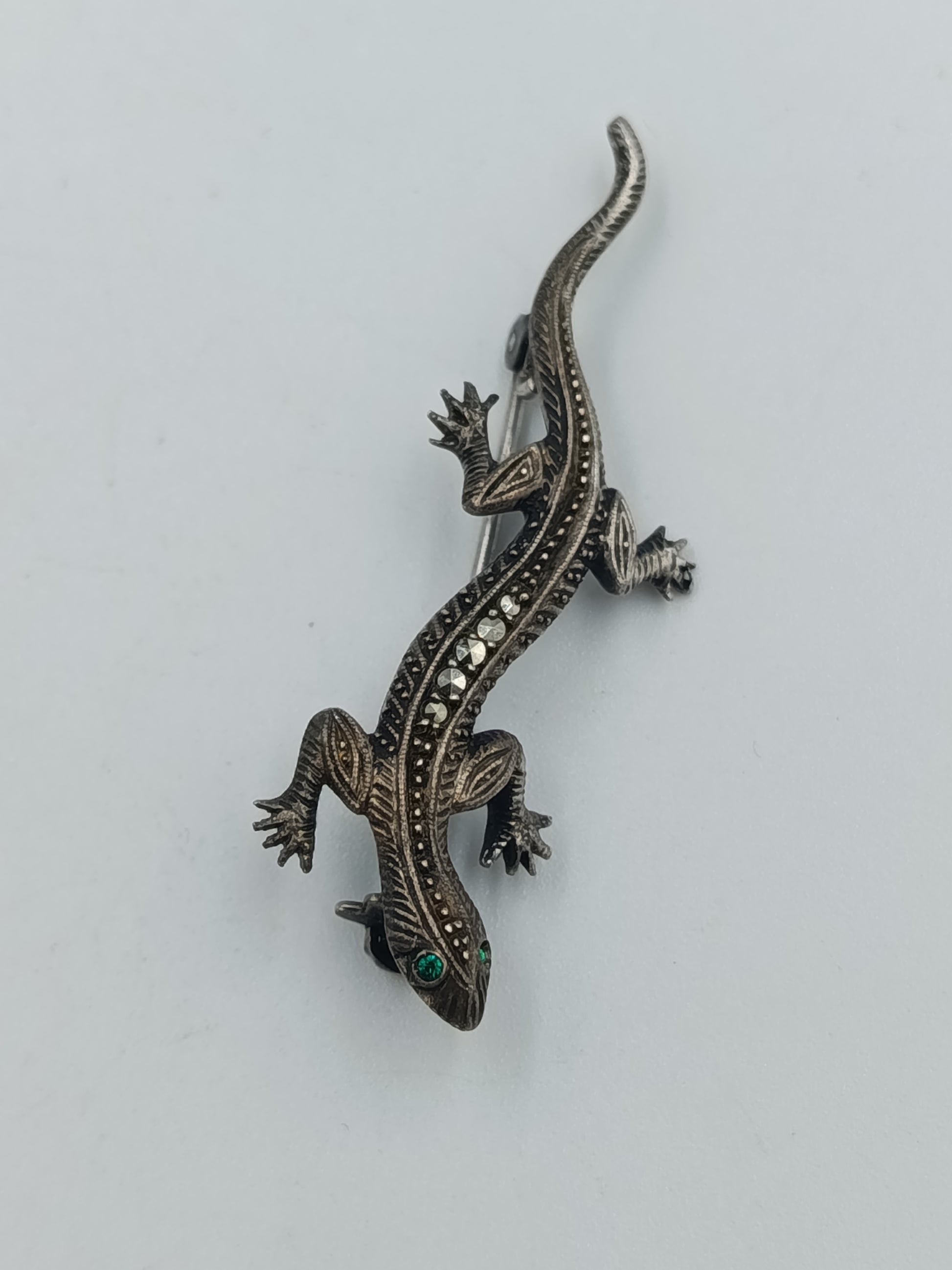 835er Silber Echsen-Brosche mit Markasiten