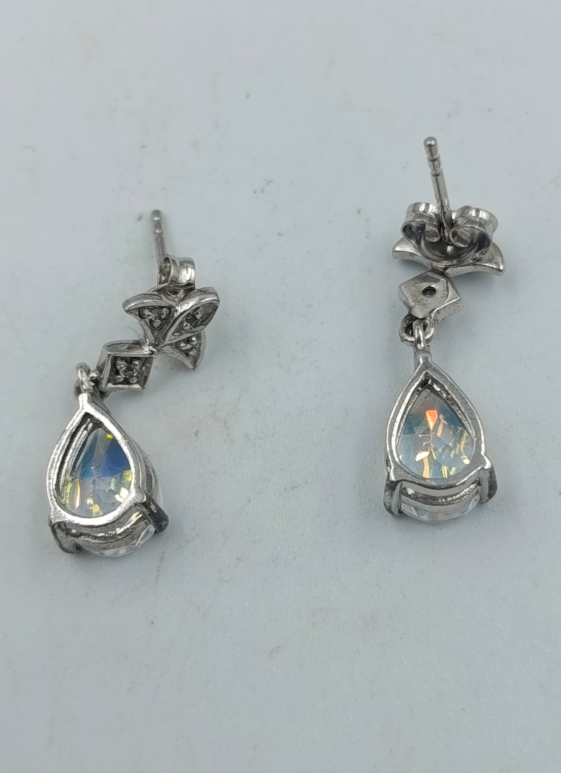 925 Silber Ohrringe mit irisierendem Stein Tropfenform elegant