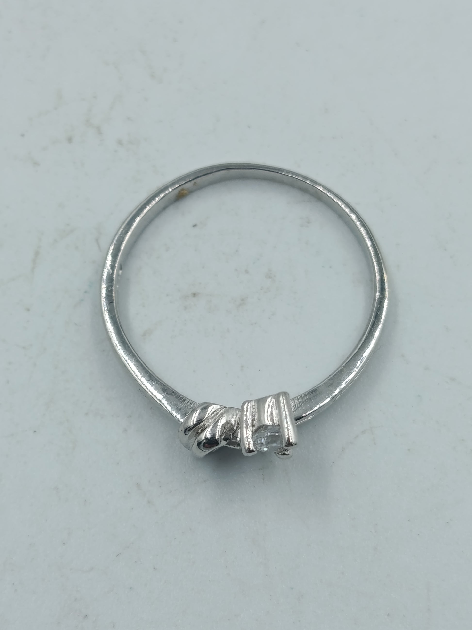 Eleganter 925 Silber Ring mit einem funkelnden, klaren Kristallstein in moderner Knotenfassung. Zeitlos, dezent und perfekt für den Alltag oder besondere Anlässe.