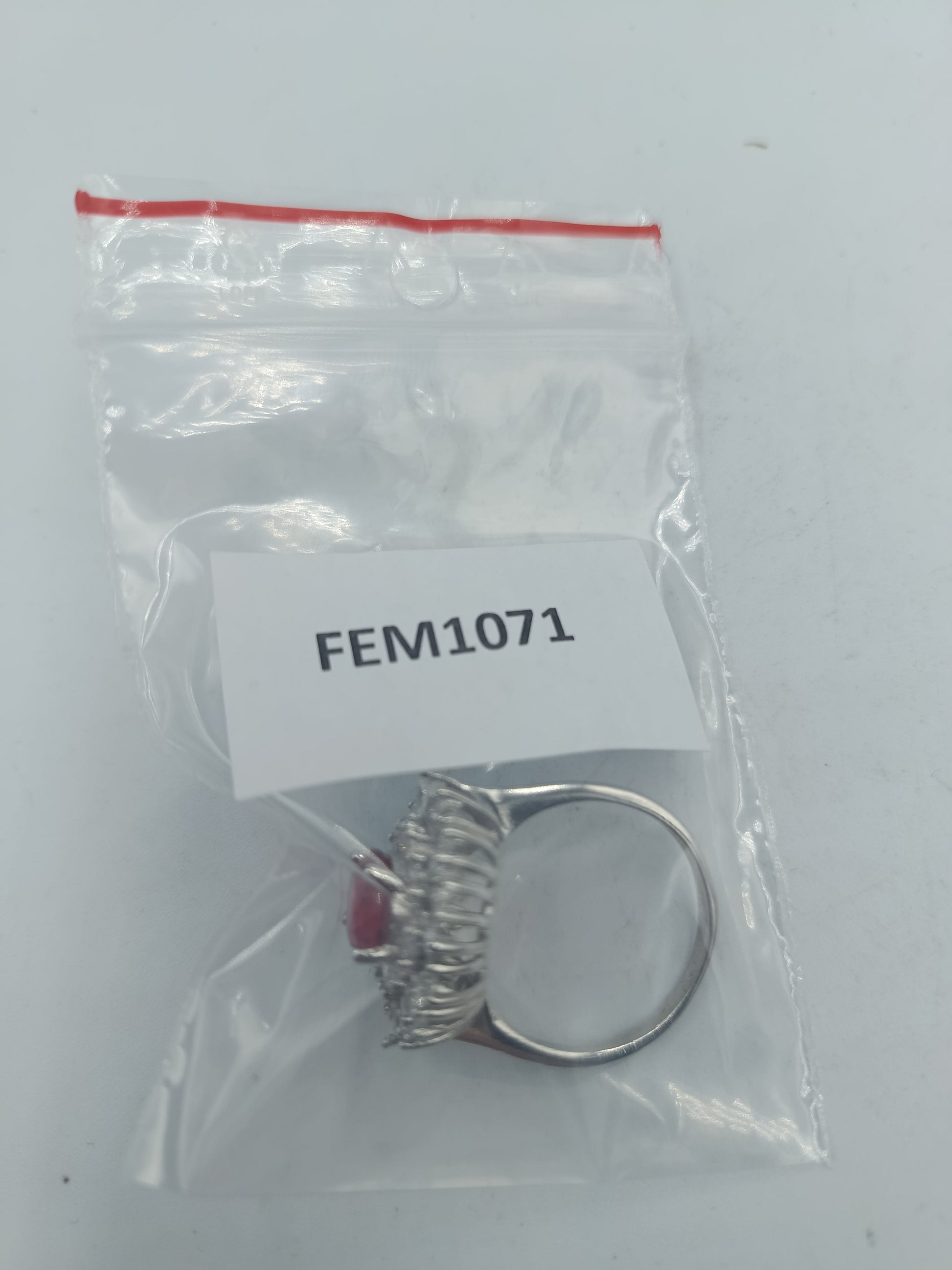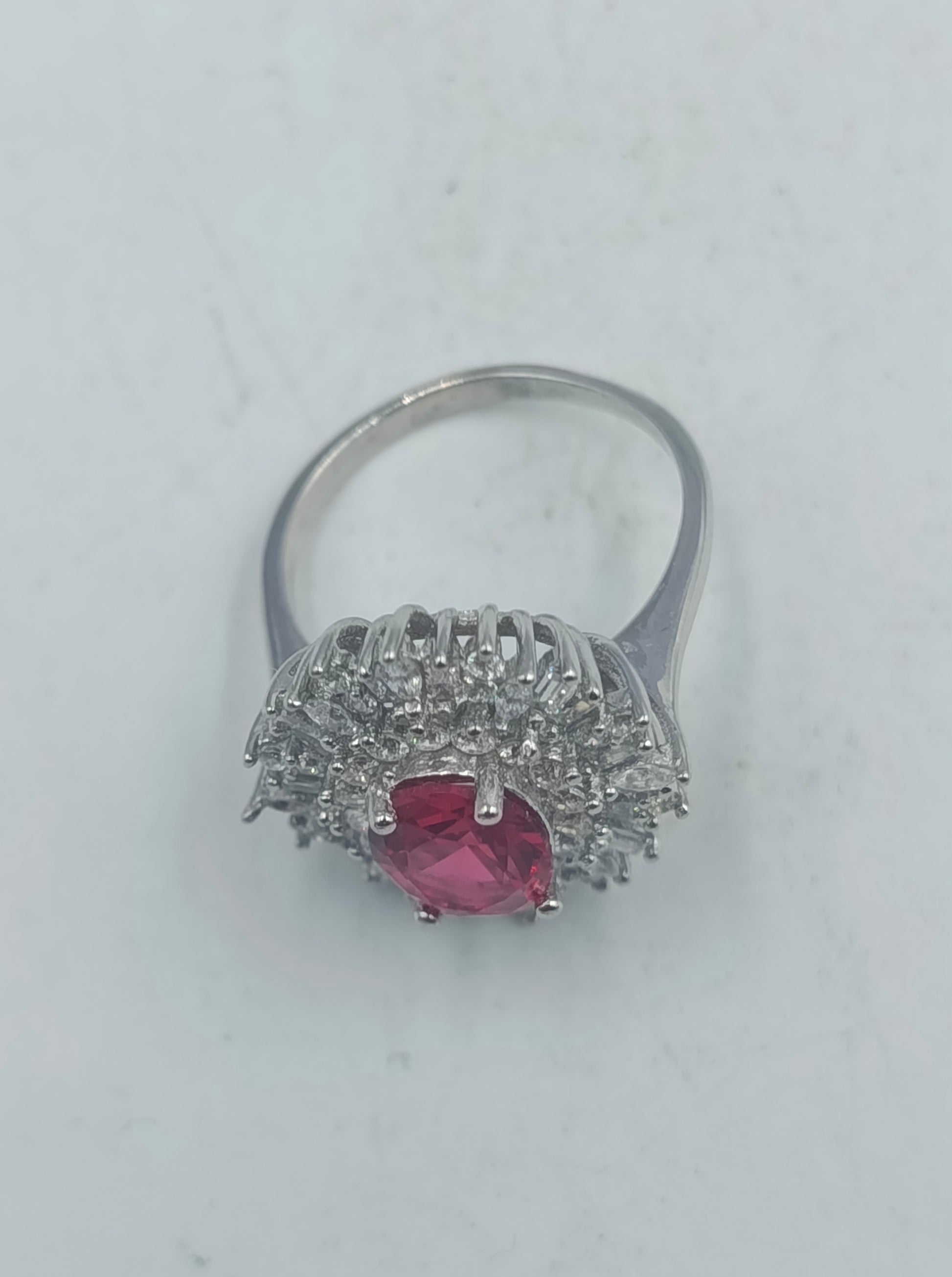 925 Silber Ring mit rubinrotem Stein und Kristallkranz