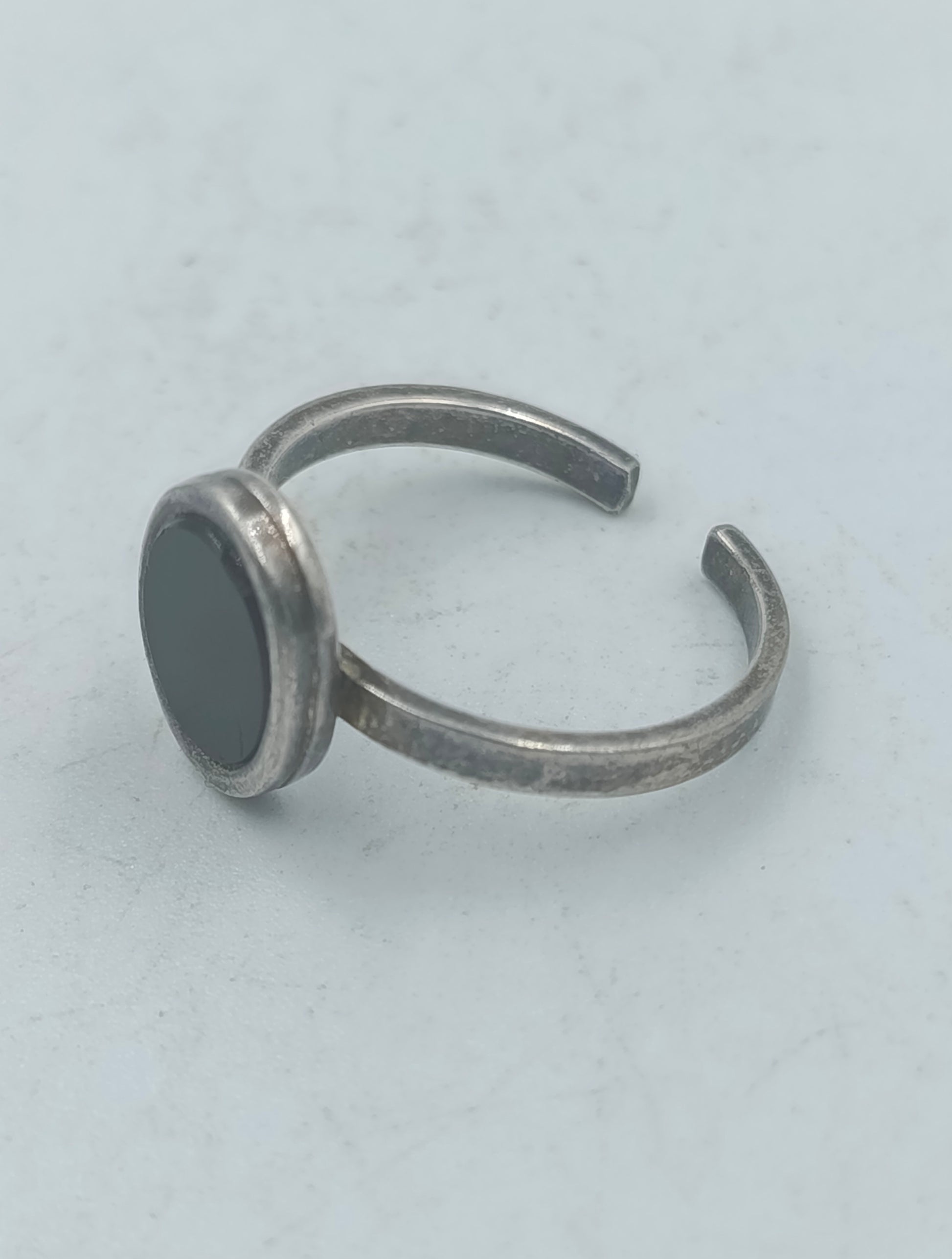 Schlichter und moderner 925 Silber Ring mit rundem schwarzem Stein.