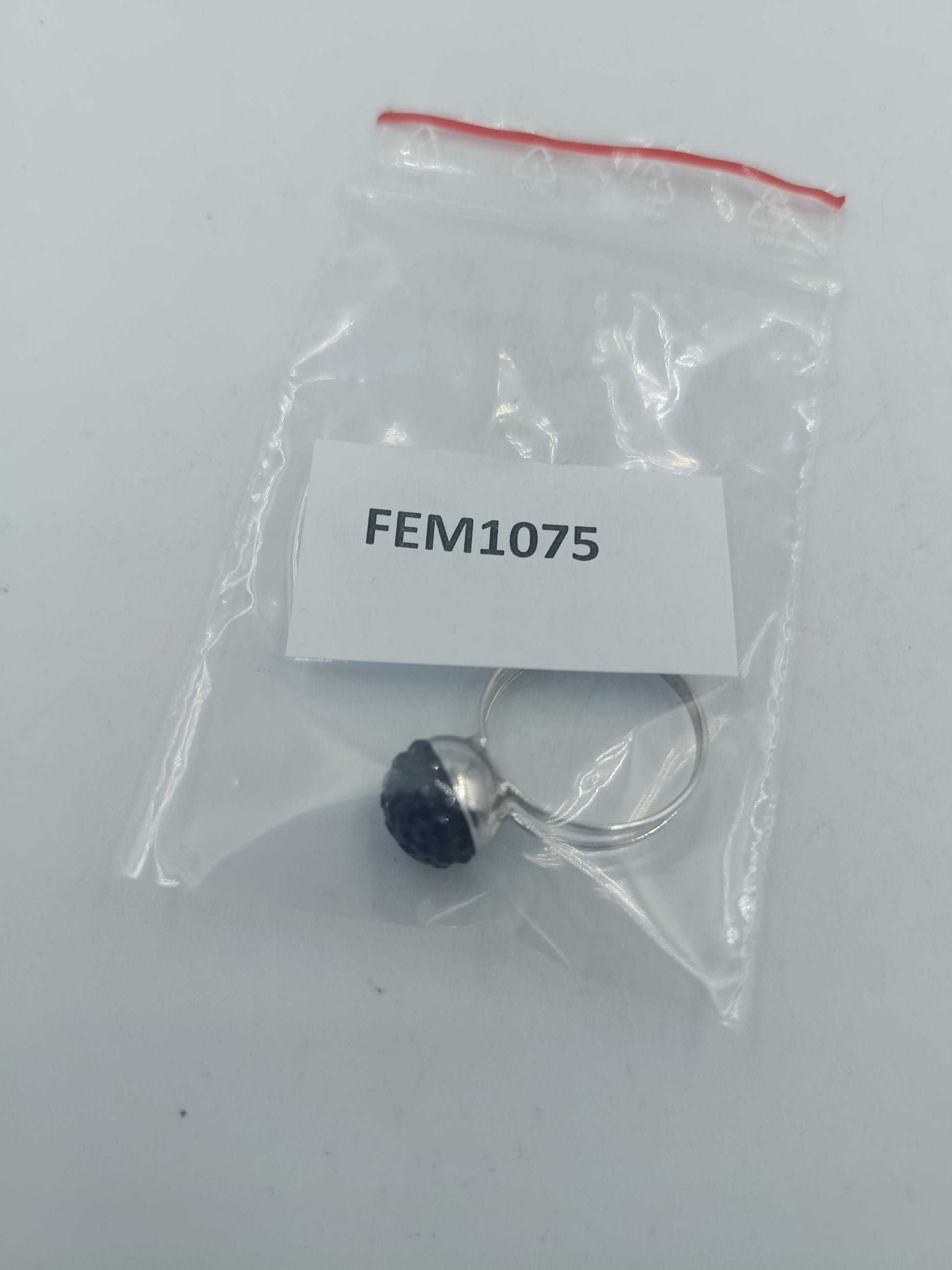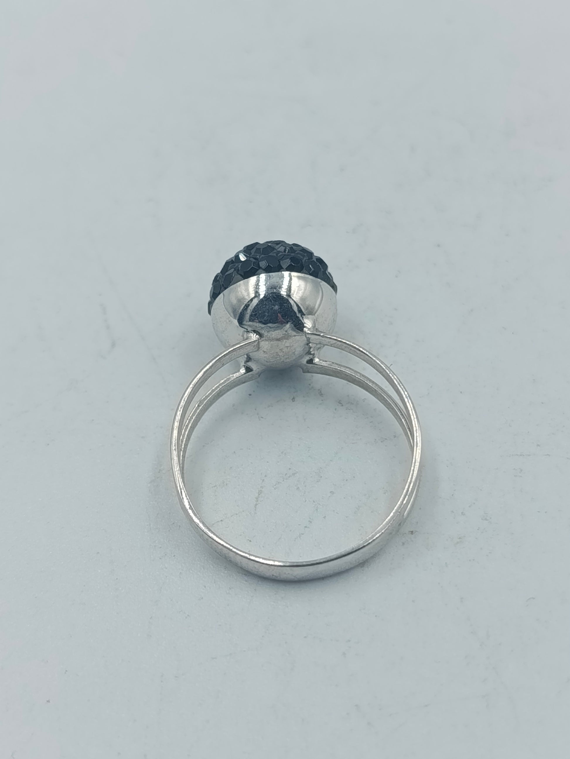 925 Silber Ring mit schwarzer Kristallkugel Größe 53