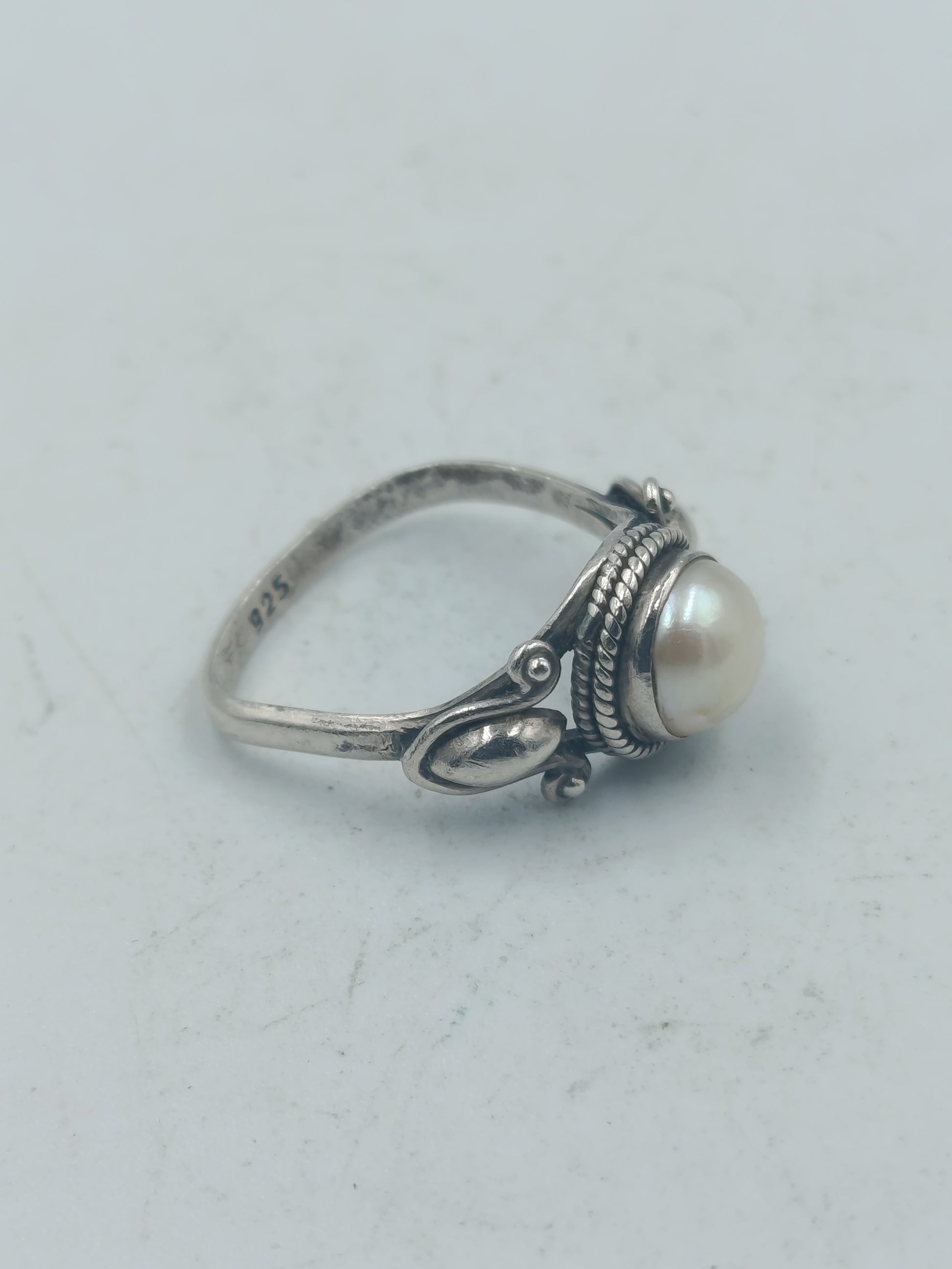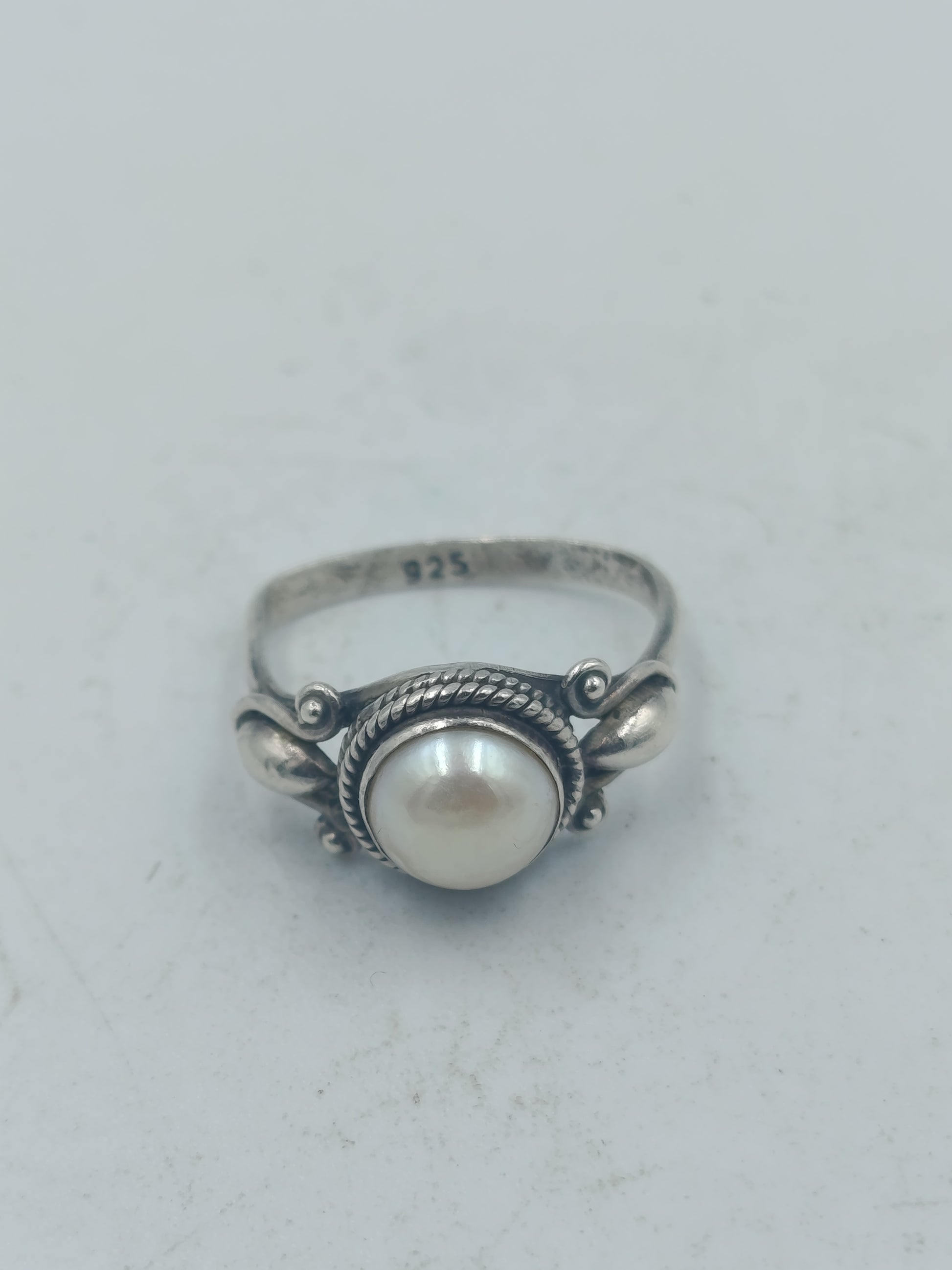 925 Silber Ring Perle Filigran Vintage Damen Gr51