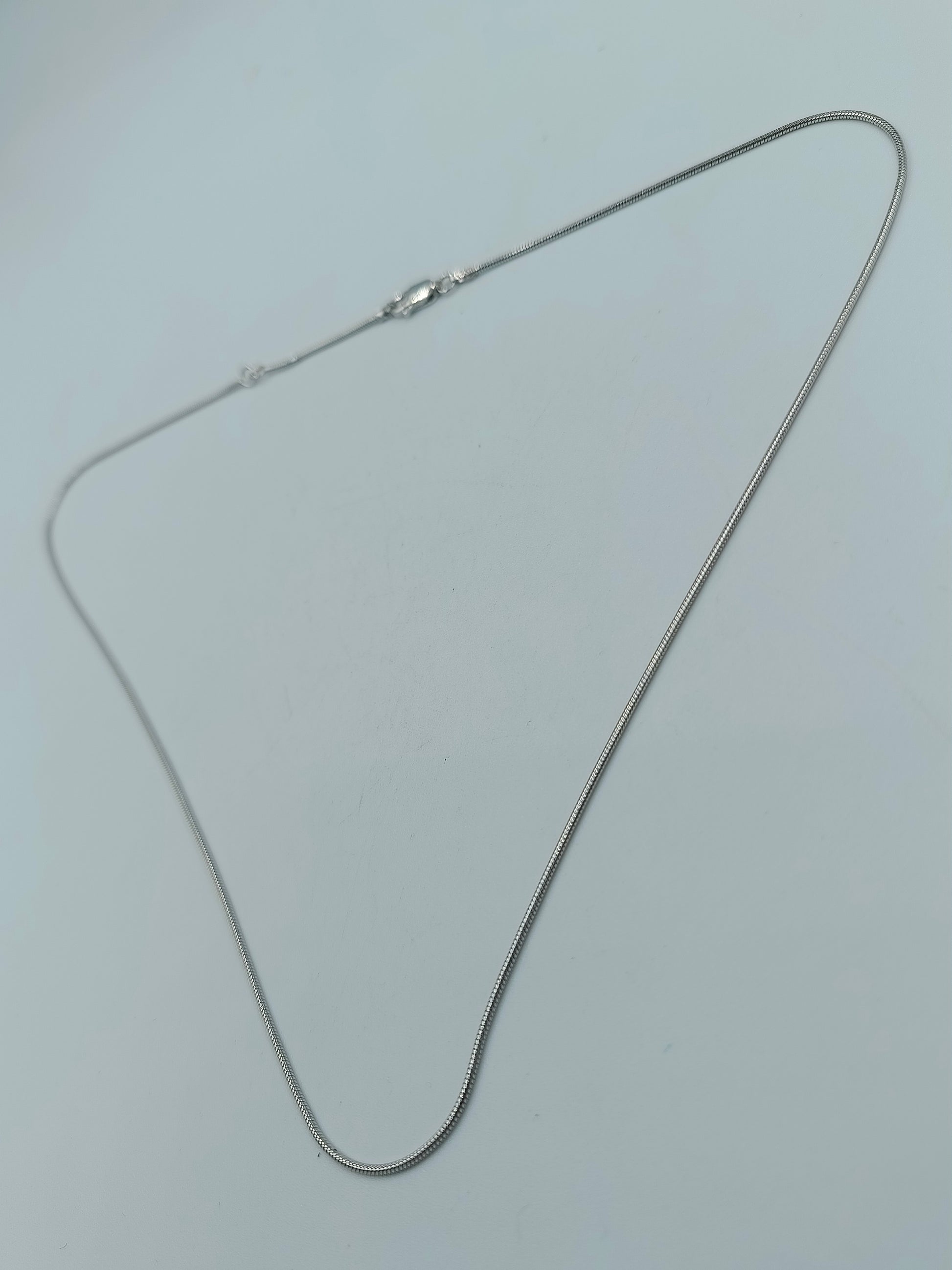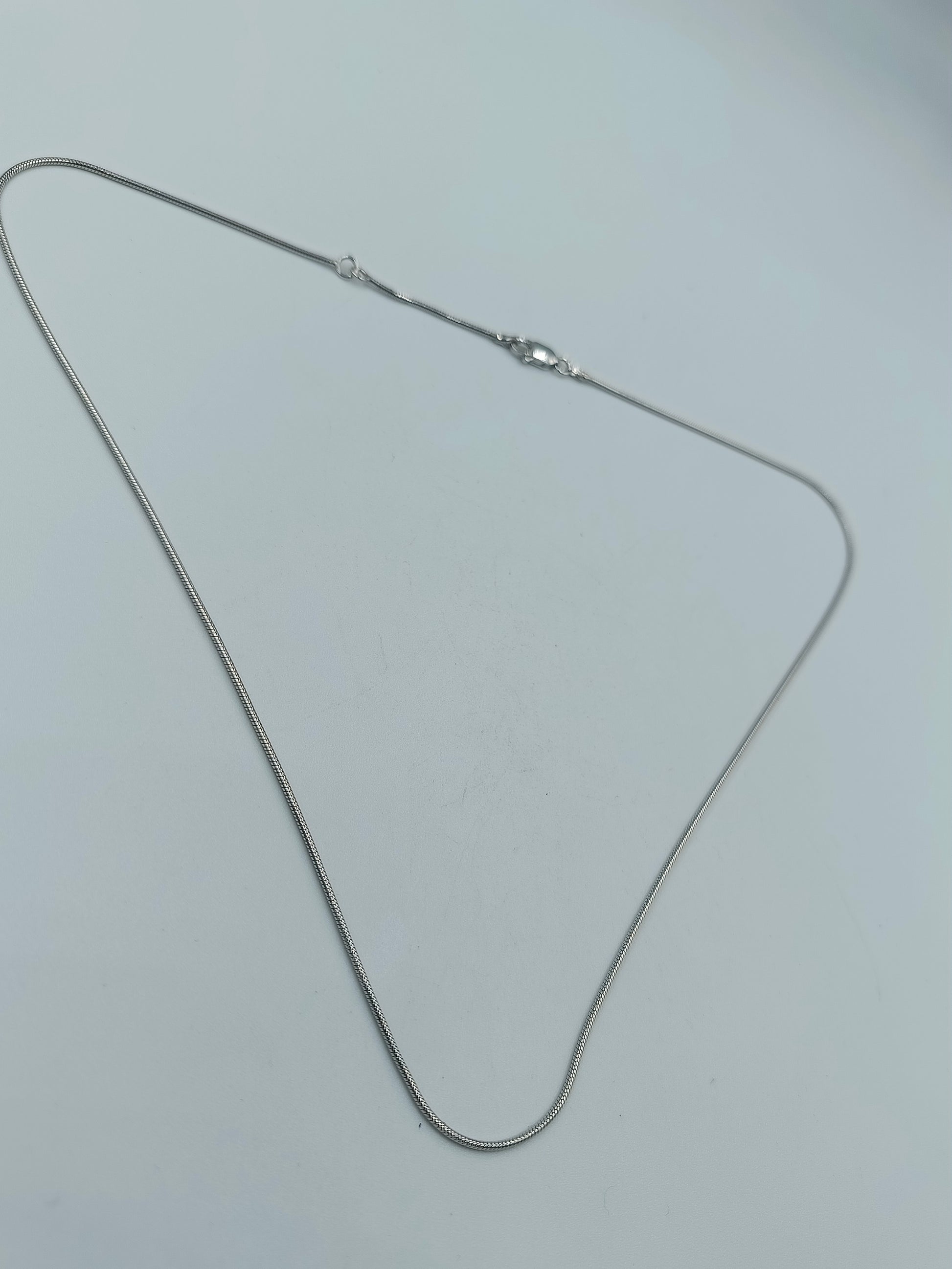 Feine Damenkette aus echtem 925er Sterlingsilber im klassischen Schlangenketten-Design. Durch ihre glatte und flexible Struktur schmiegt sie sich elegant an den Hals an und eignet sich ideal zum Tragen mit oder ohne Anhänger.