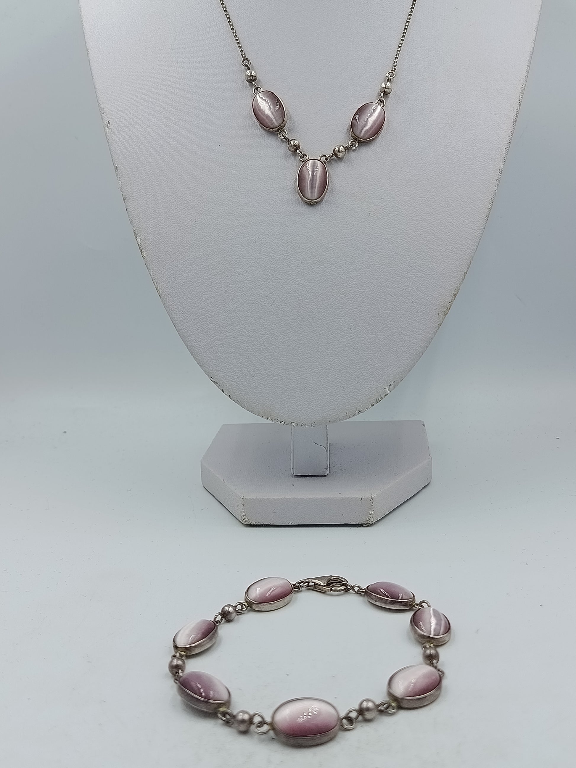 925 Silber Schmuckset mit Kette und Armband in zartem Rosa elegant und zeitlos