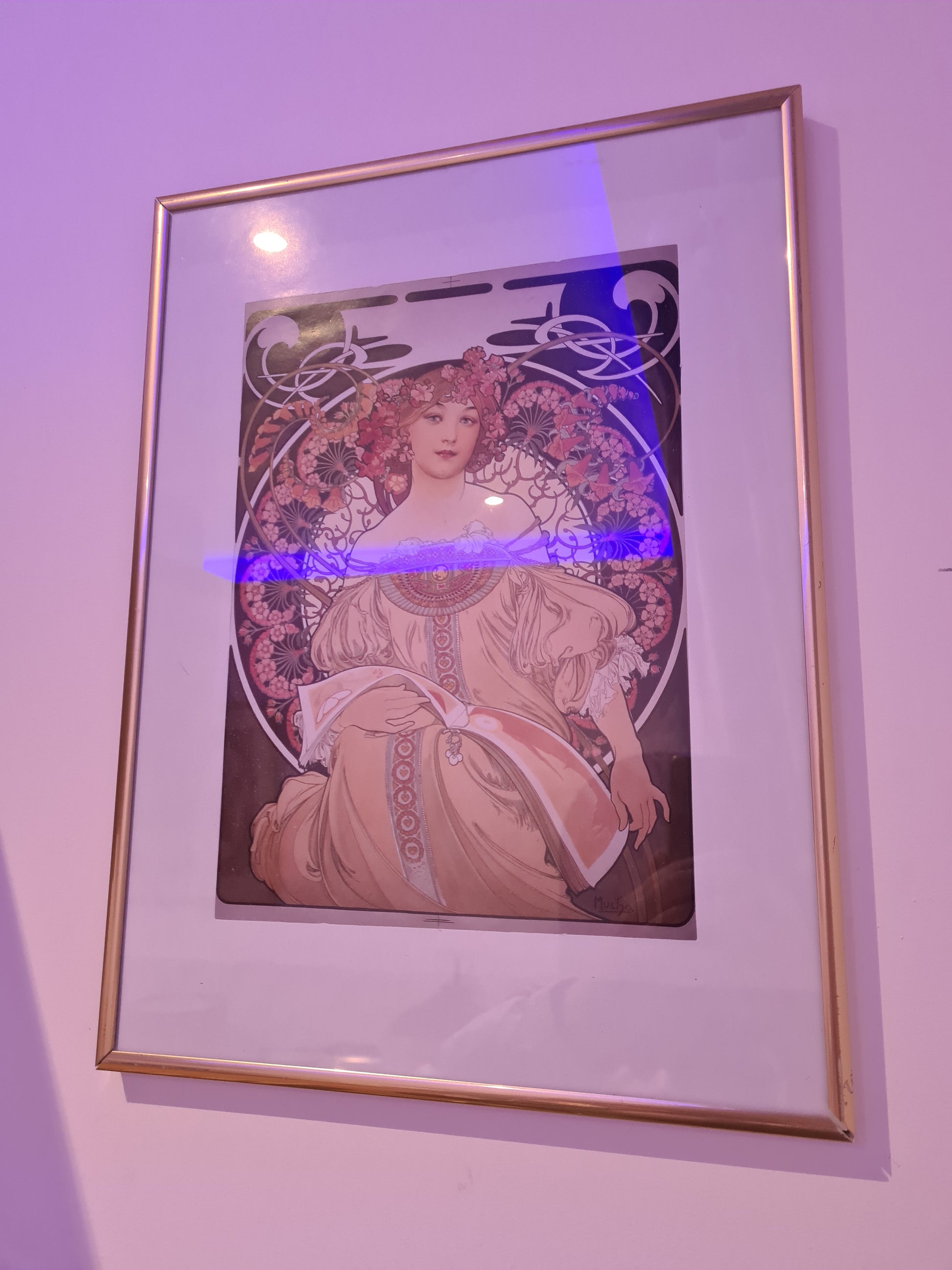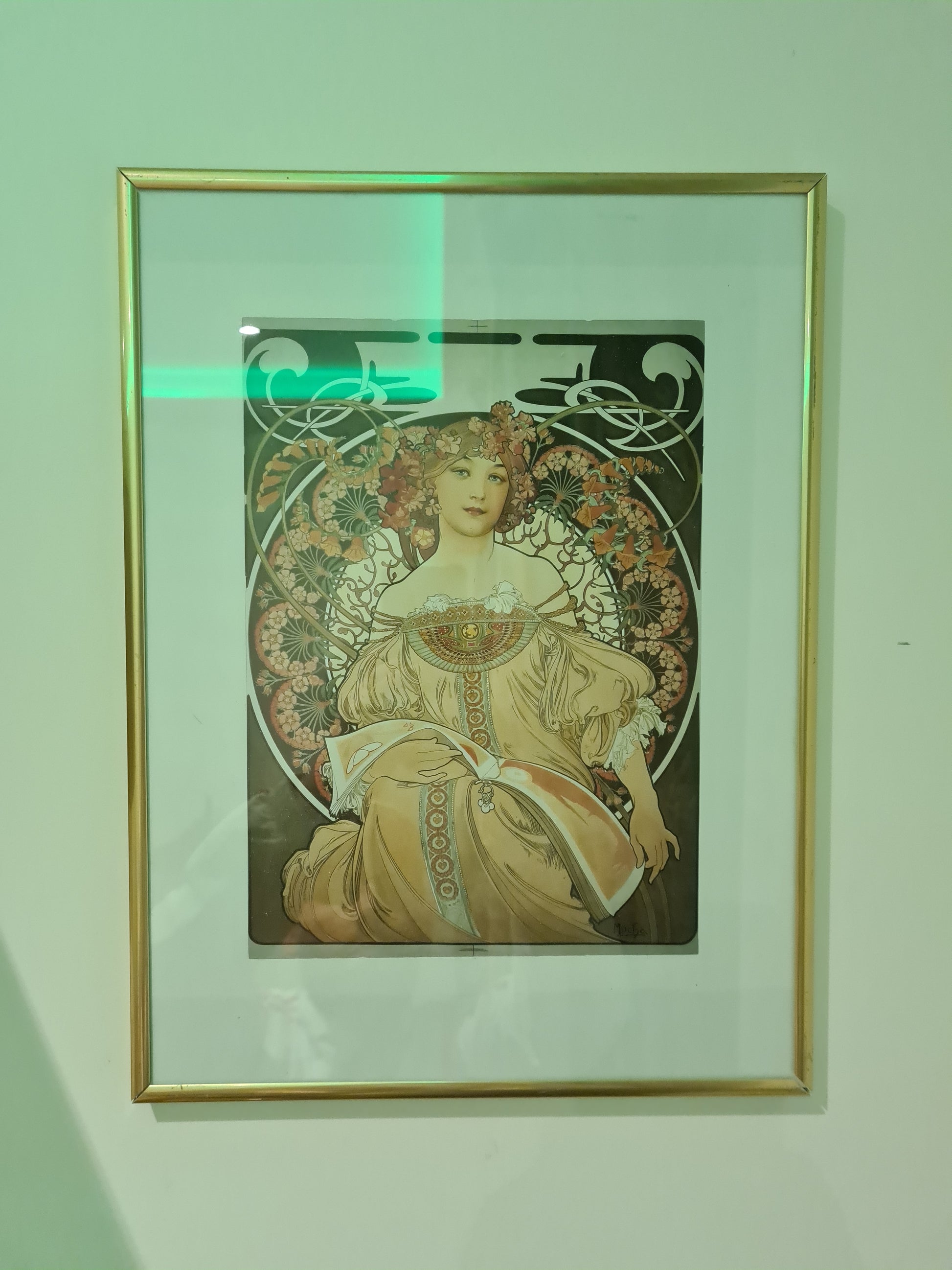 angeboten wird eine Lithographie „Daydream“ von Alphonse Mucha, ein eleganter Kunstdruck im Jugendstil.