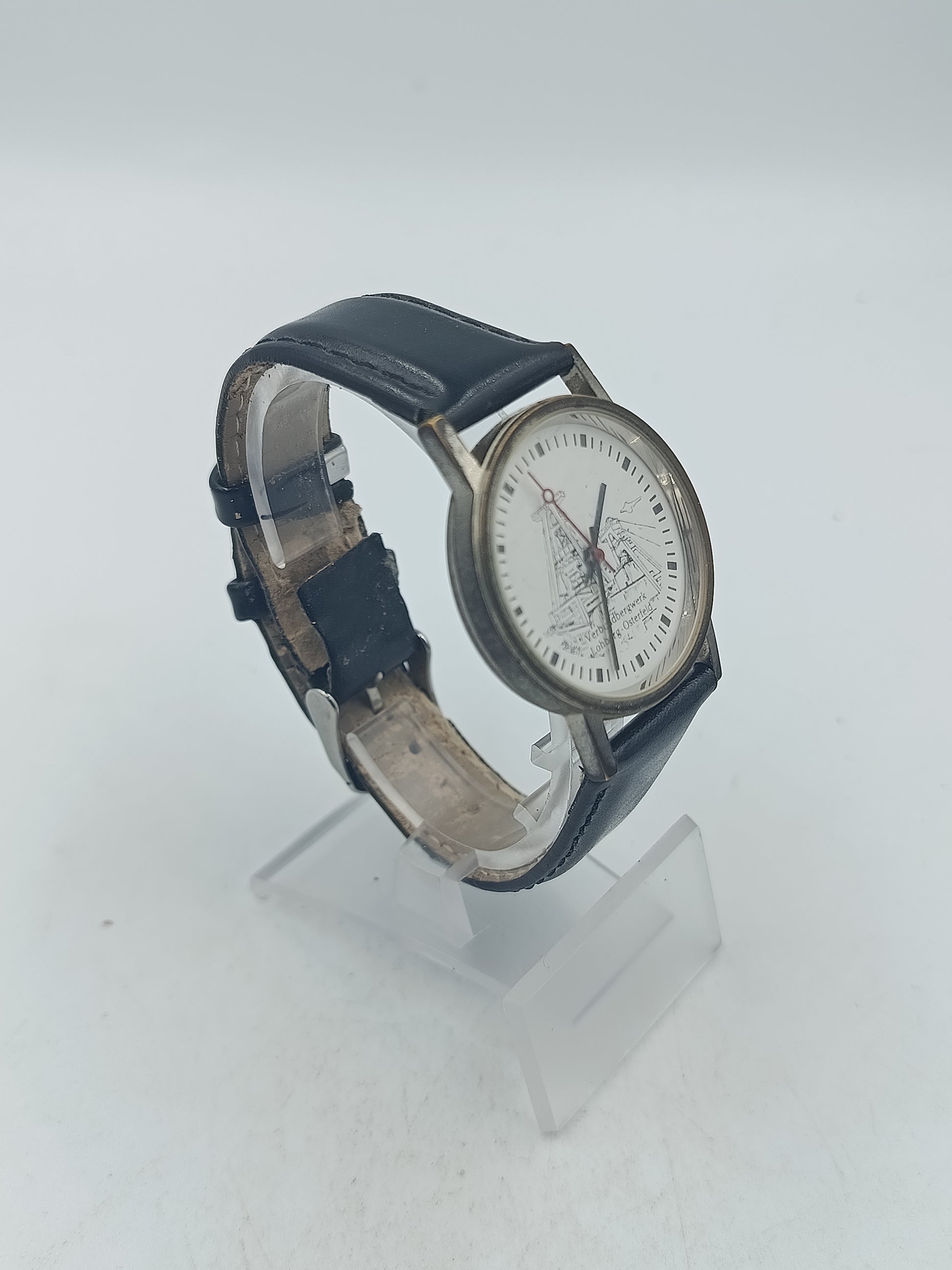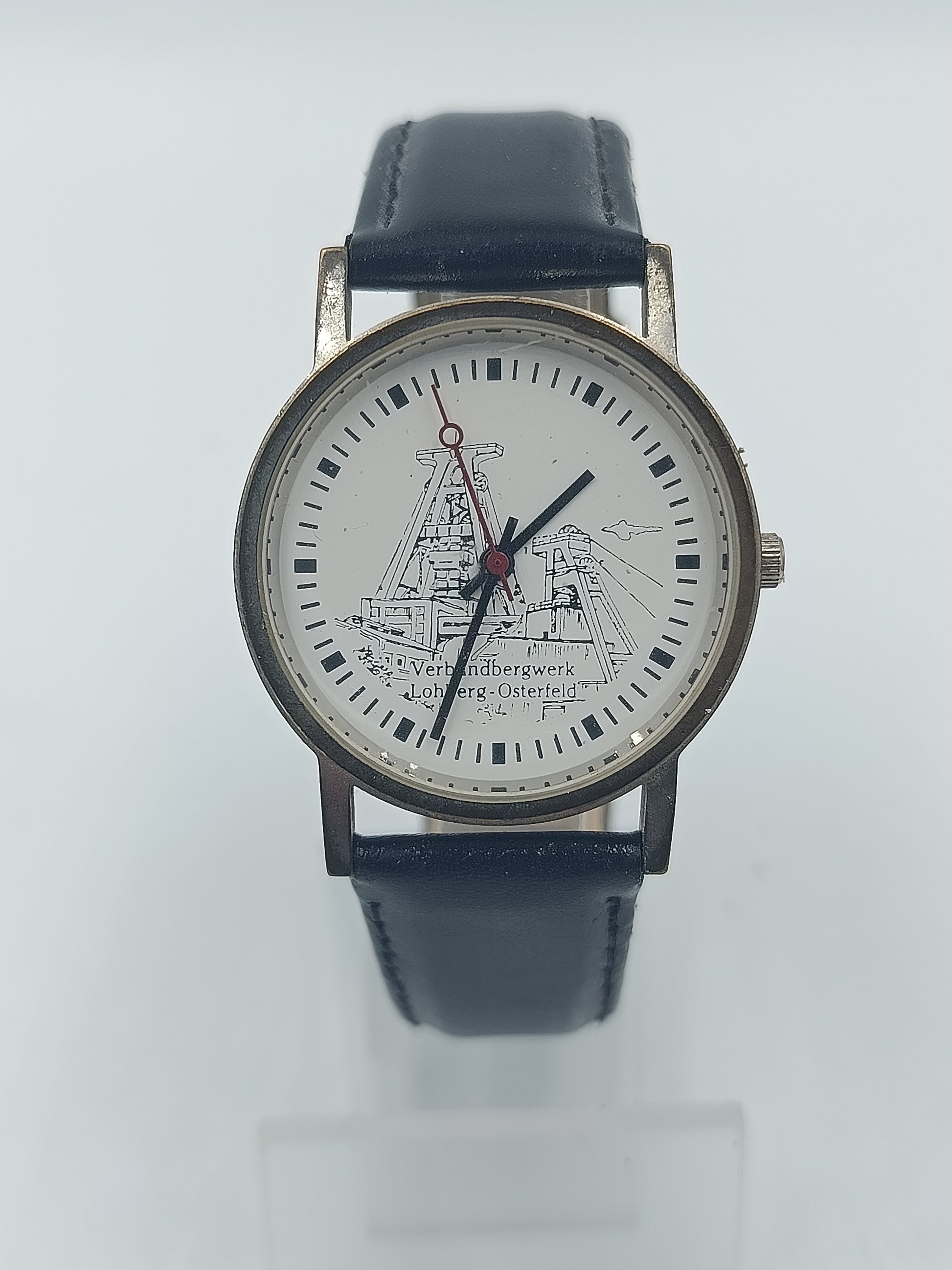 Diese analoge Armbanduhr überzeugt mit einem einzigartigen Zifferblattmotiv aus dem Bergbau und verleiht dem Modell einen besonderen historischen Charakter. Das klare helle Zifferblatt sorgt für gute Ablesbarkeit während das schwarze Lederarmband angenehm am Handgelenk sitzt. Ideal für Liebhaber regionaler Motive Sammler oder als besonderes Alltagsstück geeignet.