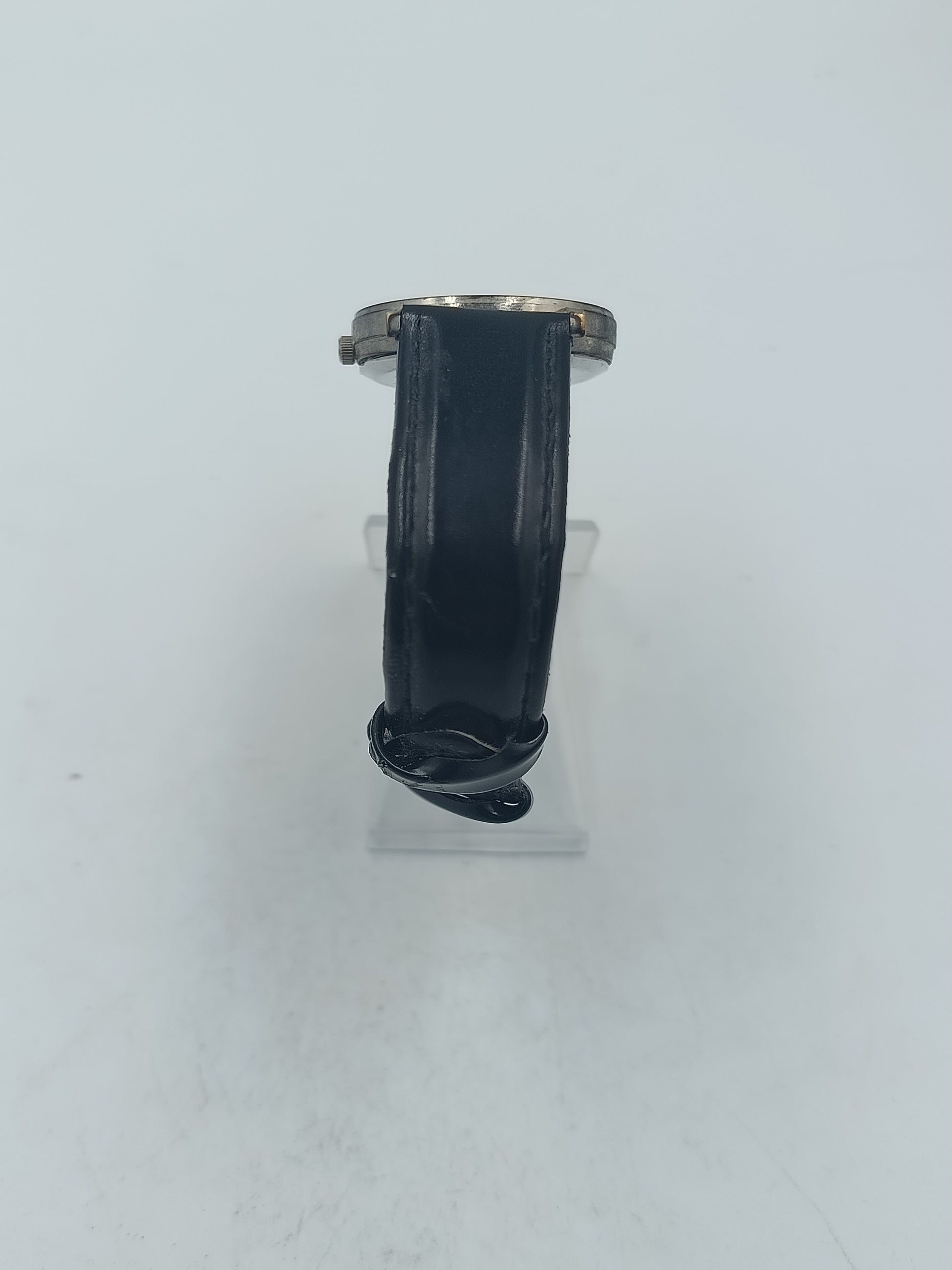 Analoge Armbanduhr mit Bergbau Motiv und schwarzem Lederarmband