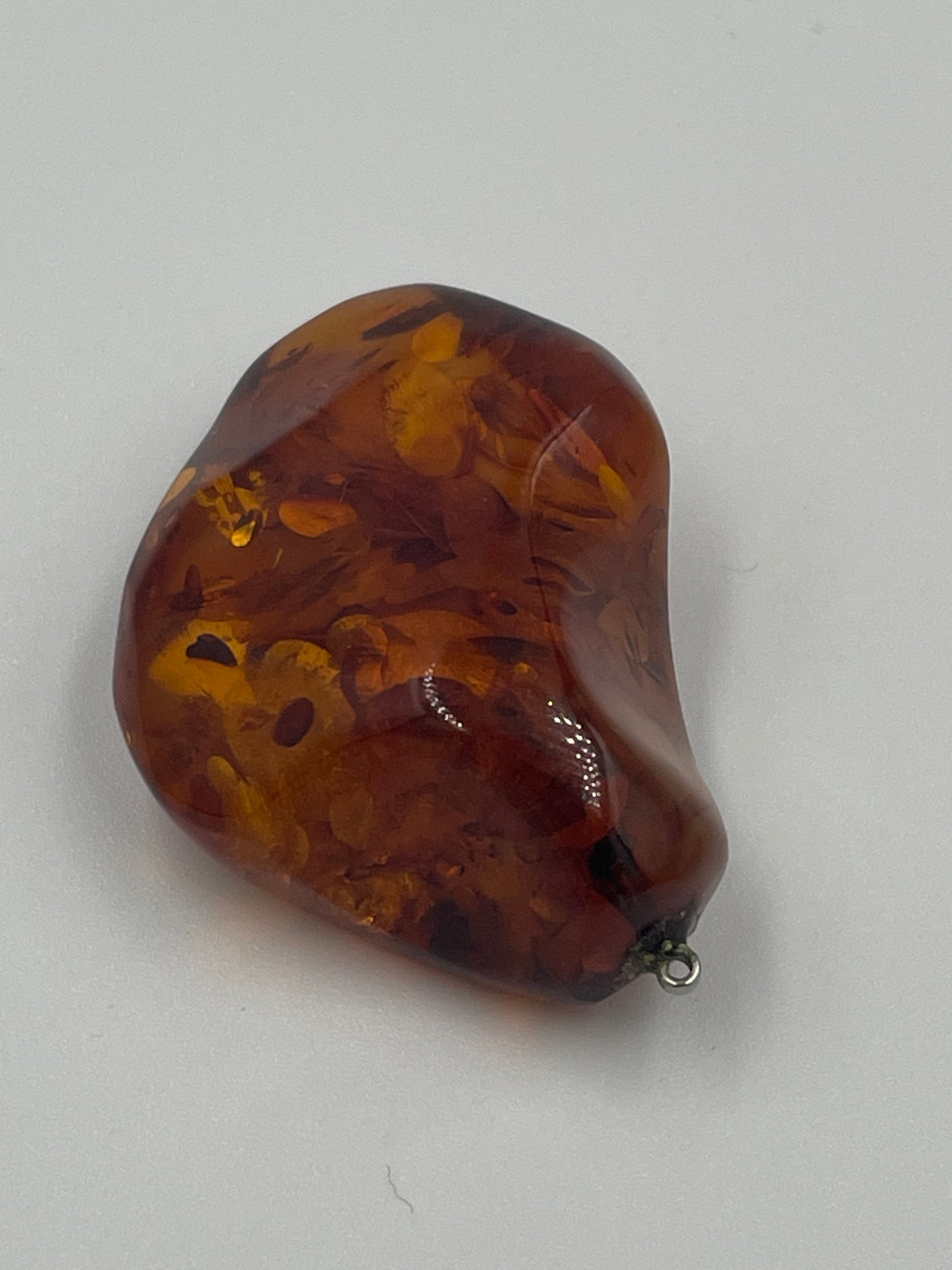 Dieser elegante Anhänger besticht durch seinen warm schimmernden Bernstein, der in seiner natürlichen Struktur und Farbgebung einzigartig ist. Das harmonische Spiel aus goldbraunen Tönen verleiht dem Stück eine zeitlose Ausstrahlung und macht es zu einem besonderen Accessoire für Liebhaber natürlicher Edelsteine. Mit seiner markanten Größe von 4,4 cm ist er sowohl als dezentes Einzelstück als auch in Kombination mit einer edlen Kette ein echter Blickfang.