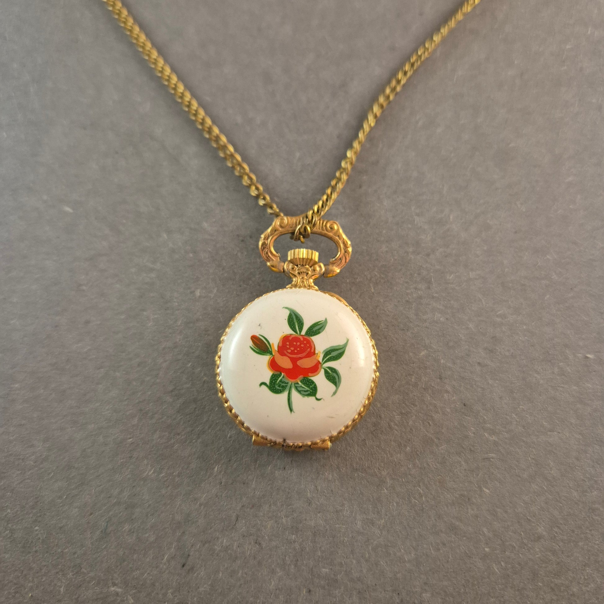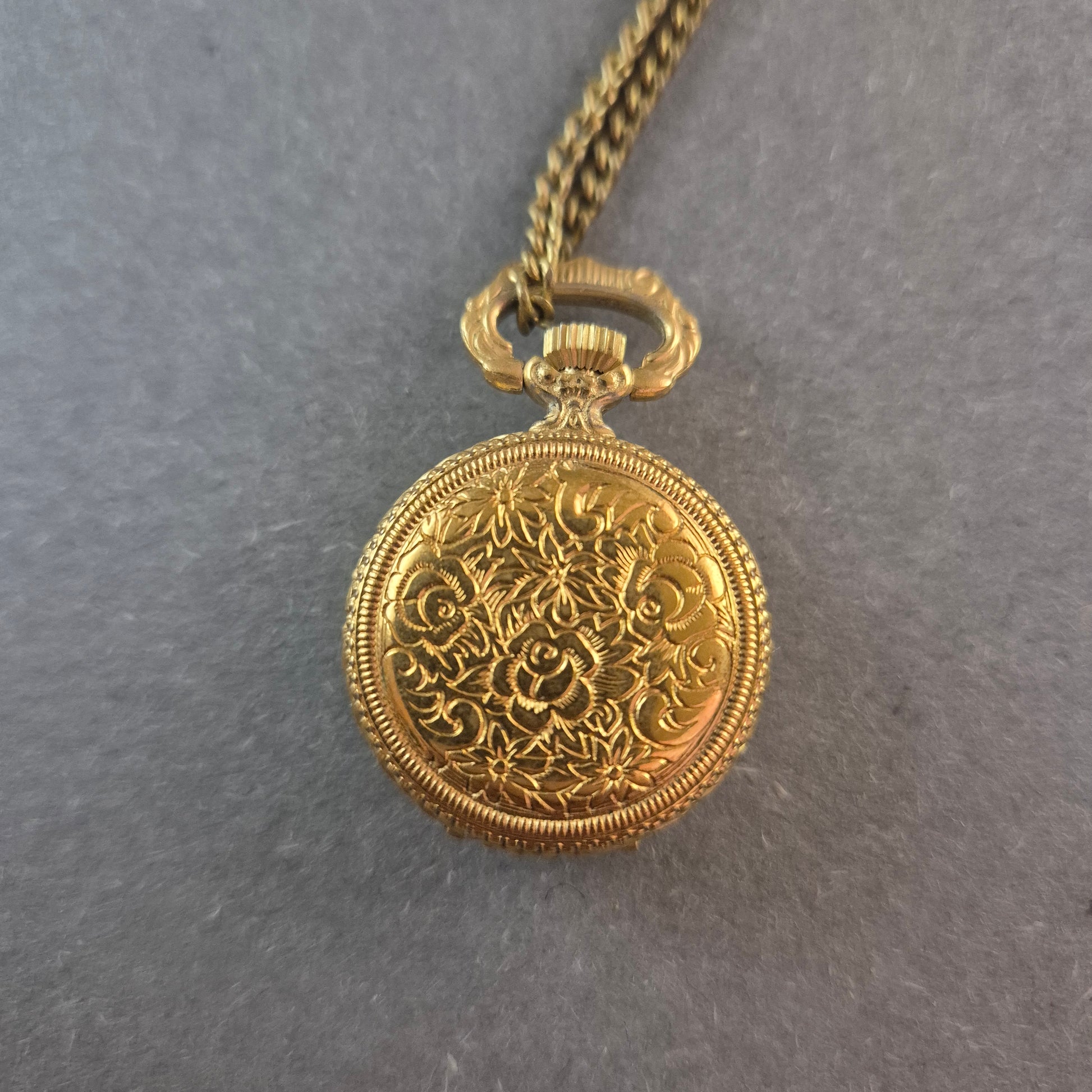 Antike Halsketten-Taschenuhr – Vergoldetes Design mit Rosenmotiv