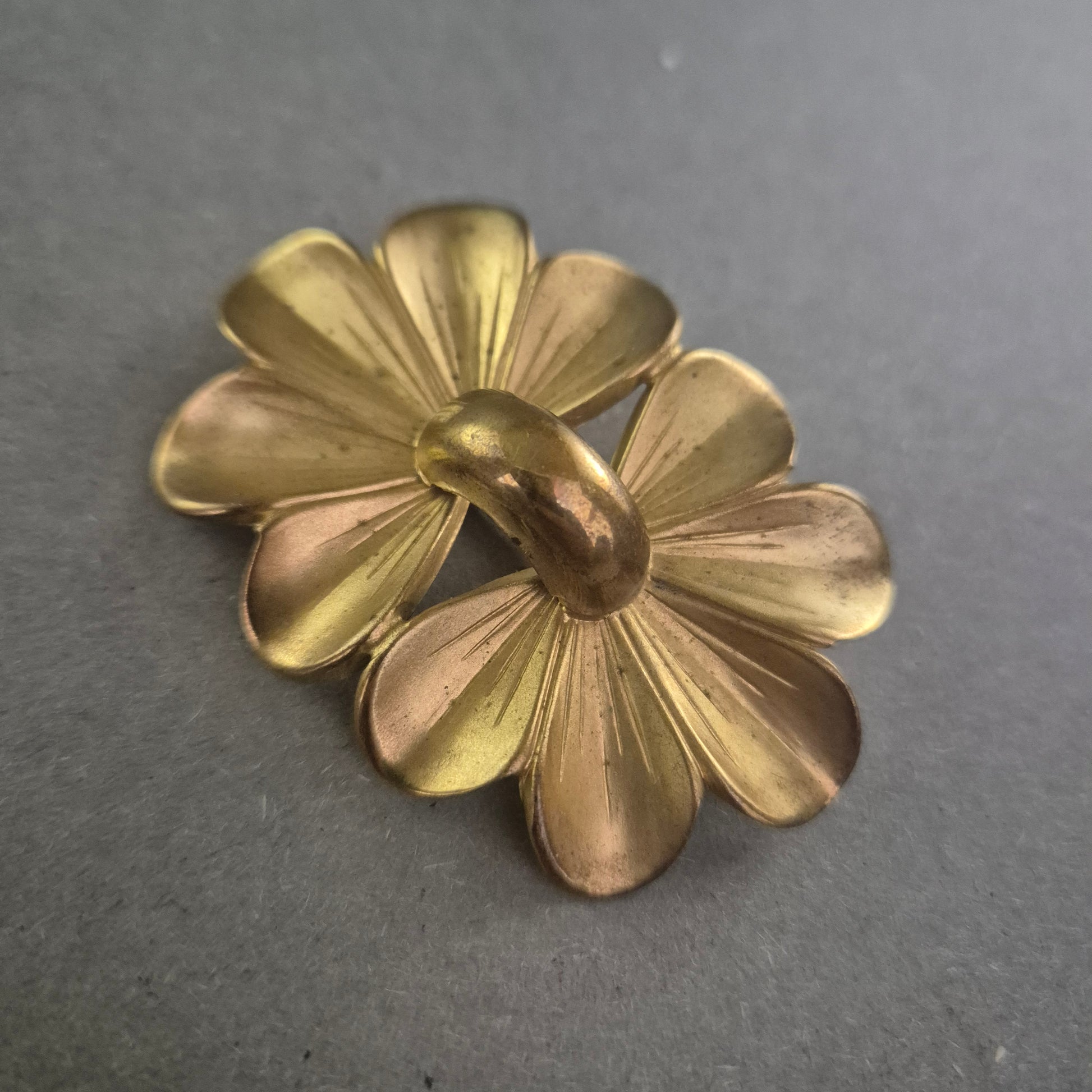 Antike Messingbrosche mit Doppelblüte – Eleganz im floralen Design