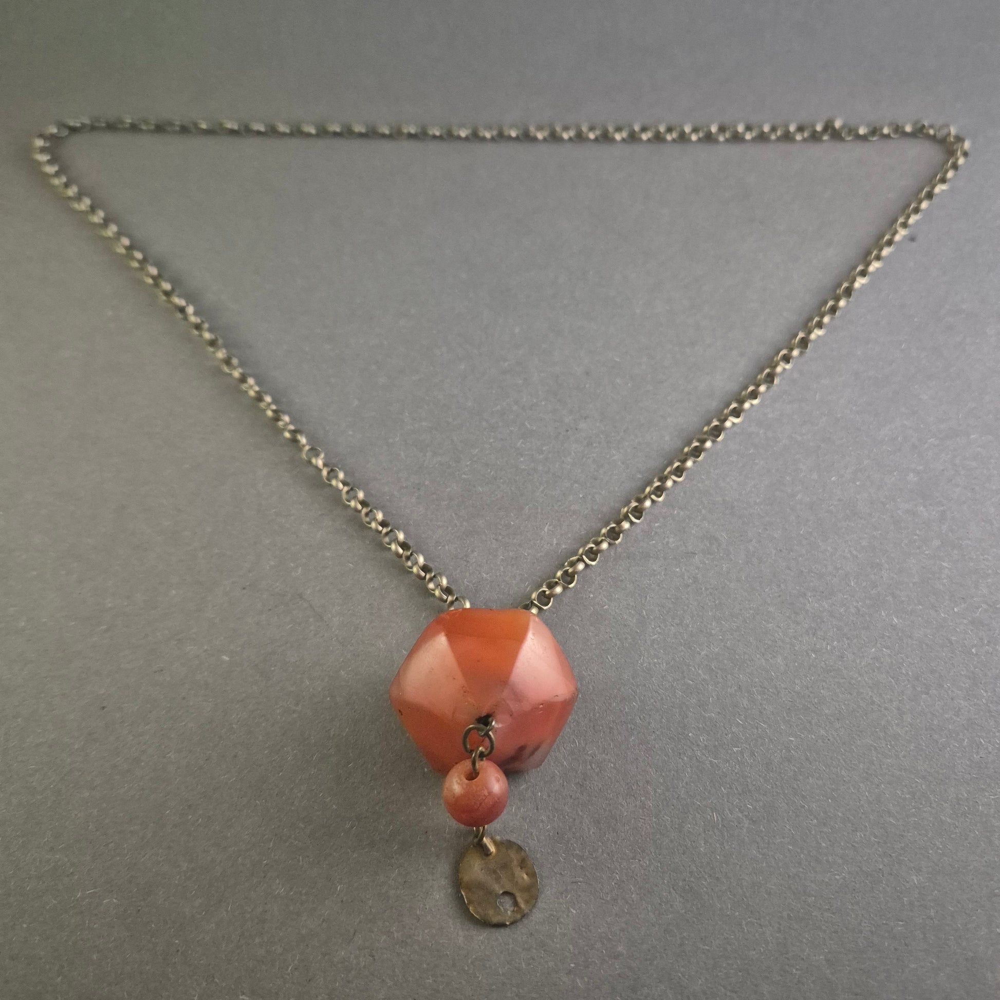 Antike Silberkette mit facettiertem Karneol-Anhänger und Münzdetail
