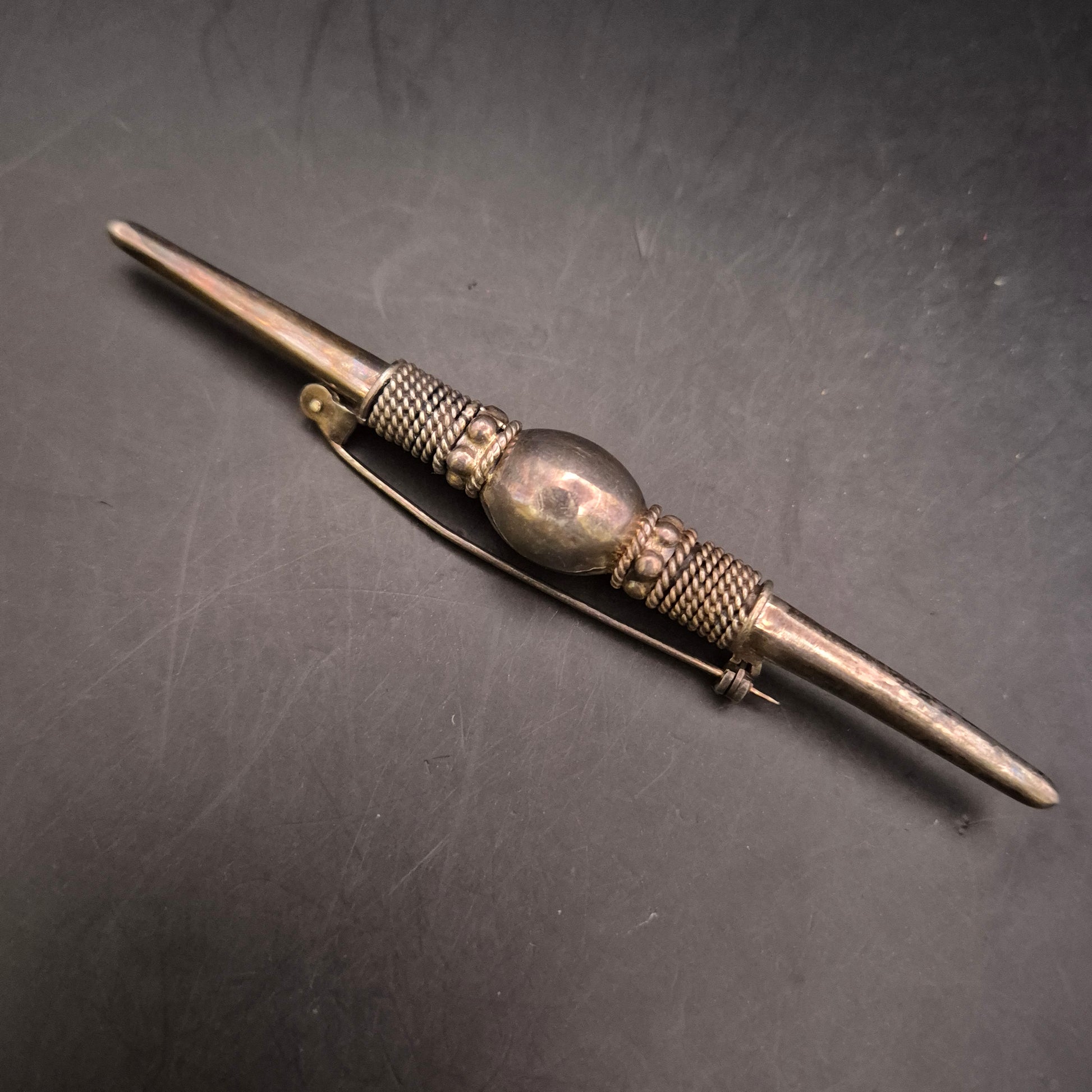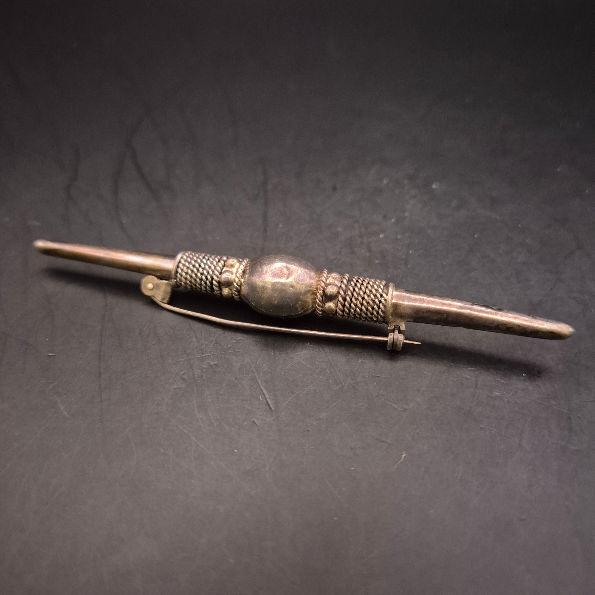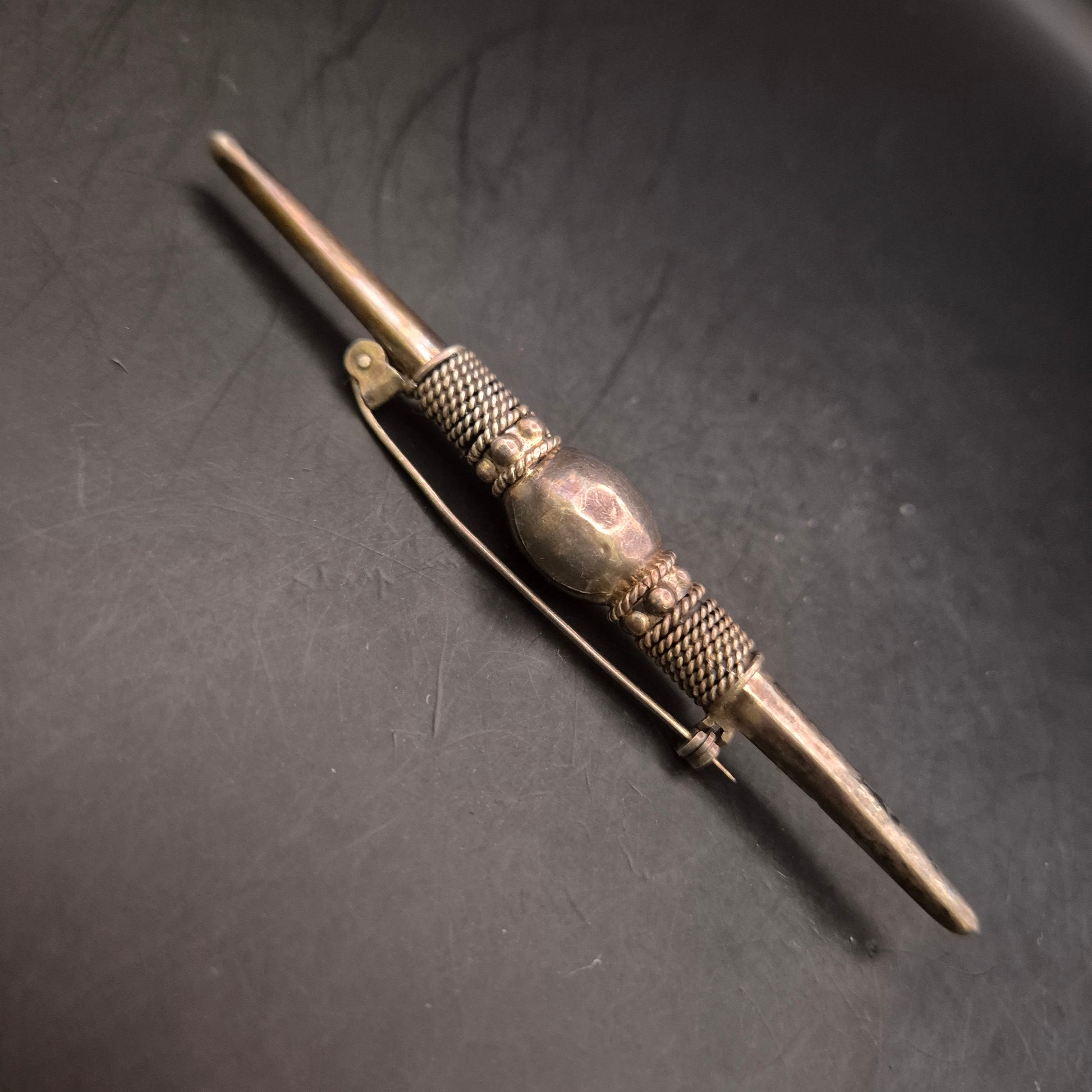 Antike Stabbrosche mit gedrehtem Draht und zentraler Kugel