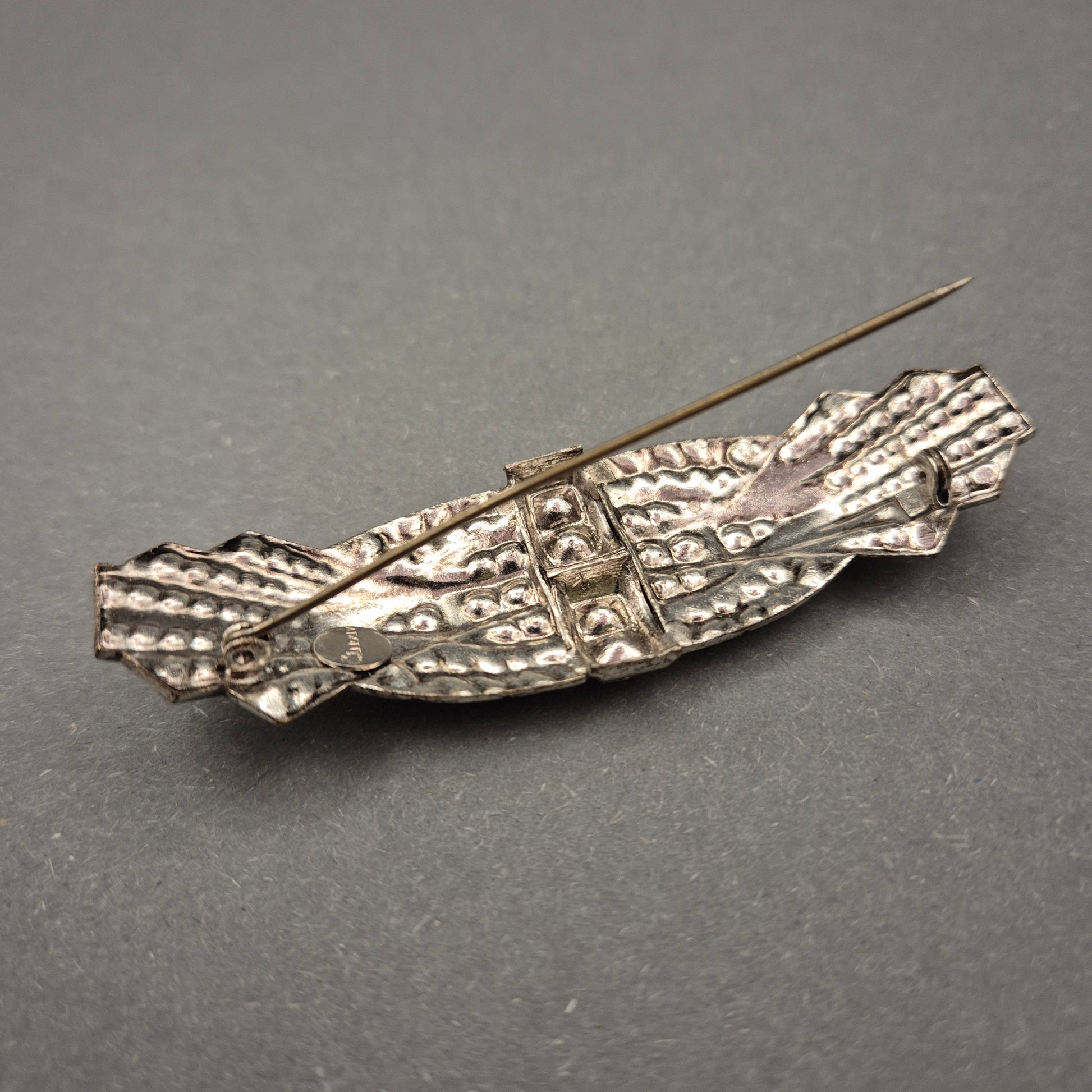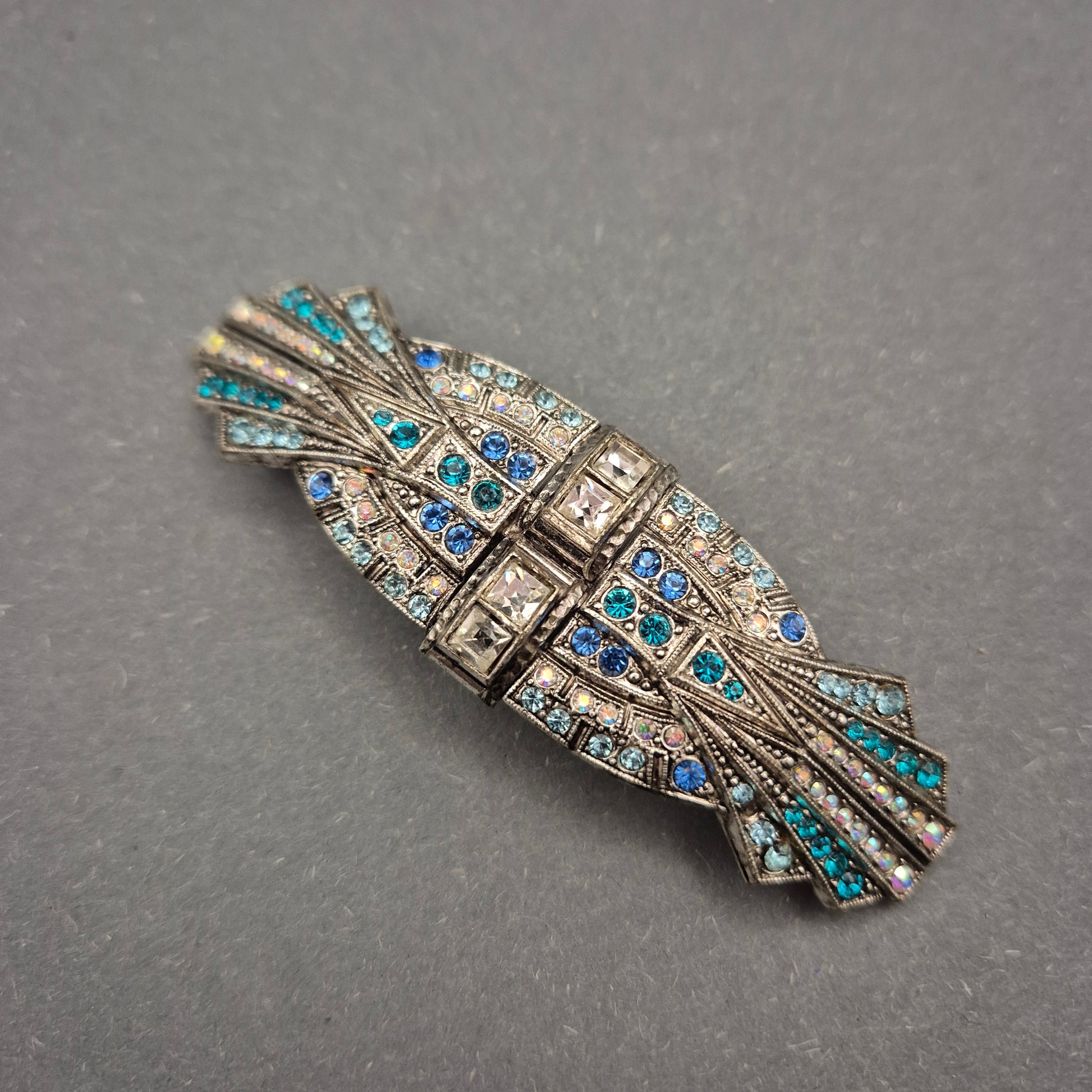 Art-Déco Brosche mit blauen Strasssteinen im Vintage-Stil