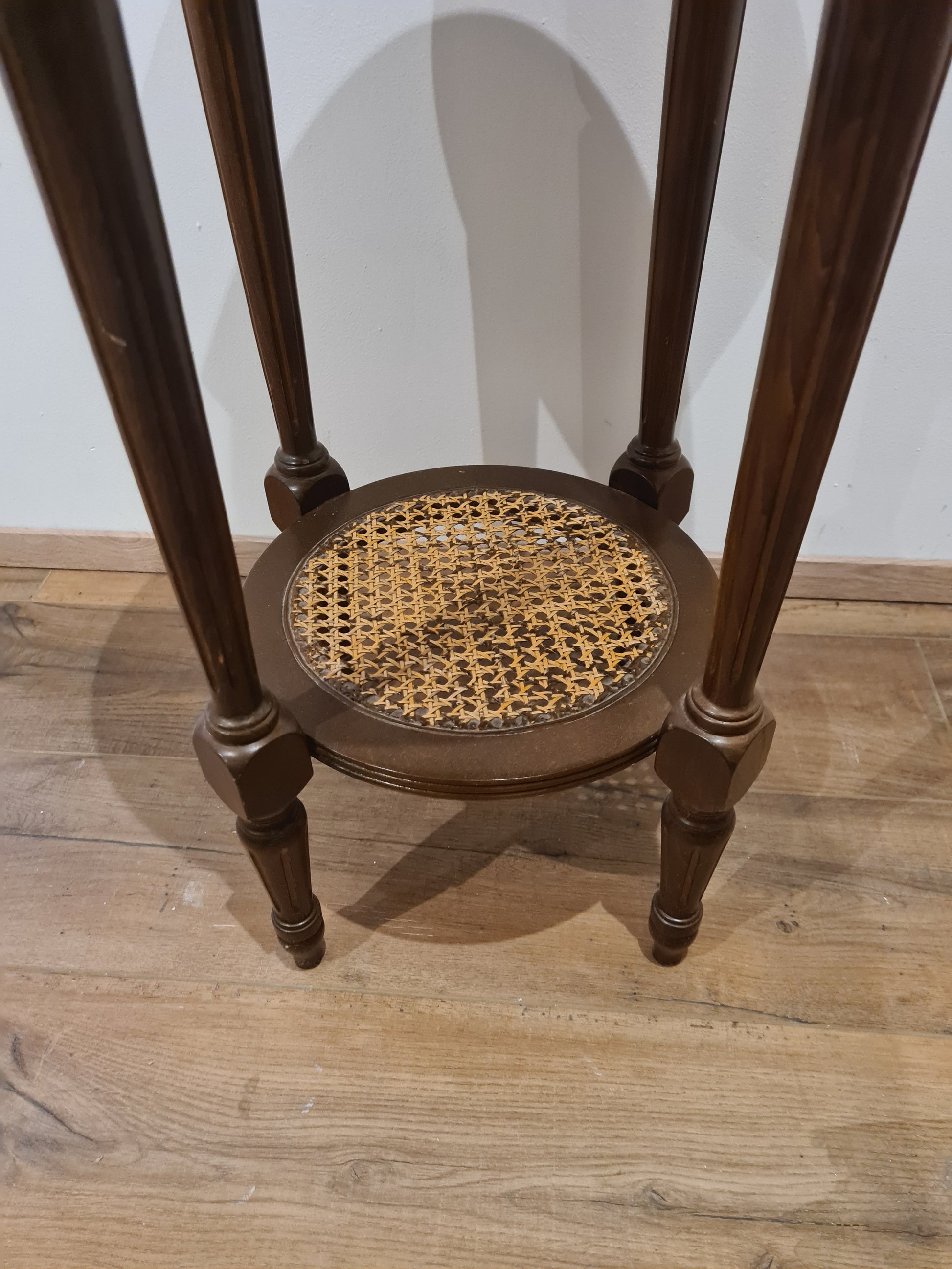 angeboten wird ein Jugendstil Beistelltisch / Blumensäule mit floralen Motiven – ein dekoratives Möbelstück mit zeitlosem Charme.