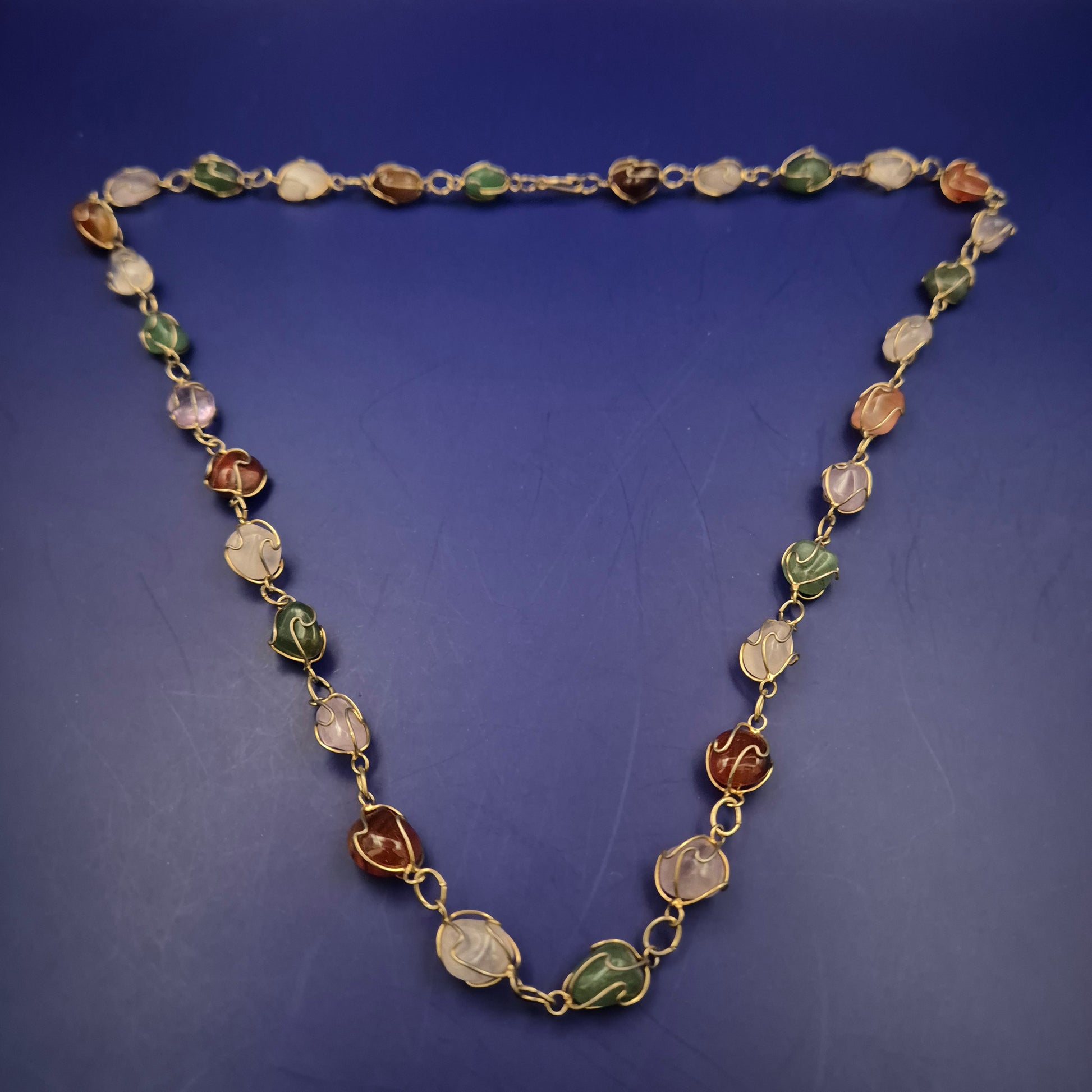 Bunte Edelstein Halskette – Handgefasste Natursteine in Goldoptik