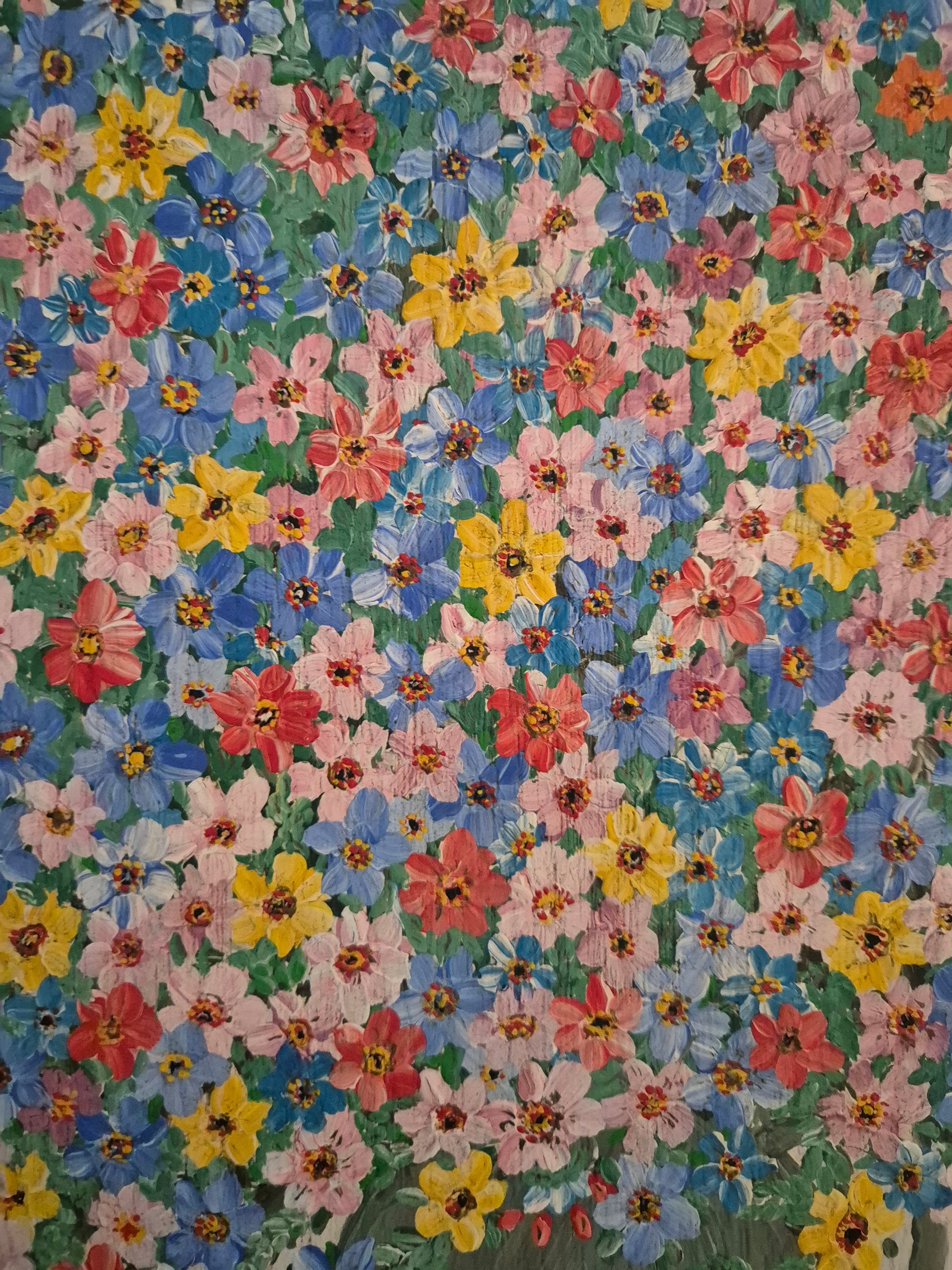 Herzlich willkommen, angeboten wird ein wunderschönes Acrylgemälde der Deutschen Schule aus dem 20. Jahrhundert. Das Werk ist handsigniert und auf das Jahr 1980 datiert. Es zeigt ein lebendiges, farbenfrohes Blumenstillleben mit kräftigen, leuchtenden Tönen, die eine warme und positive Ausstrahlung vermitteln.