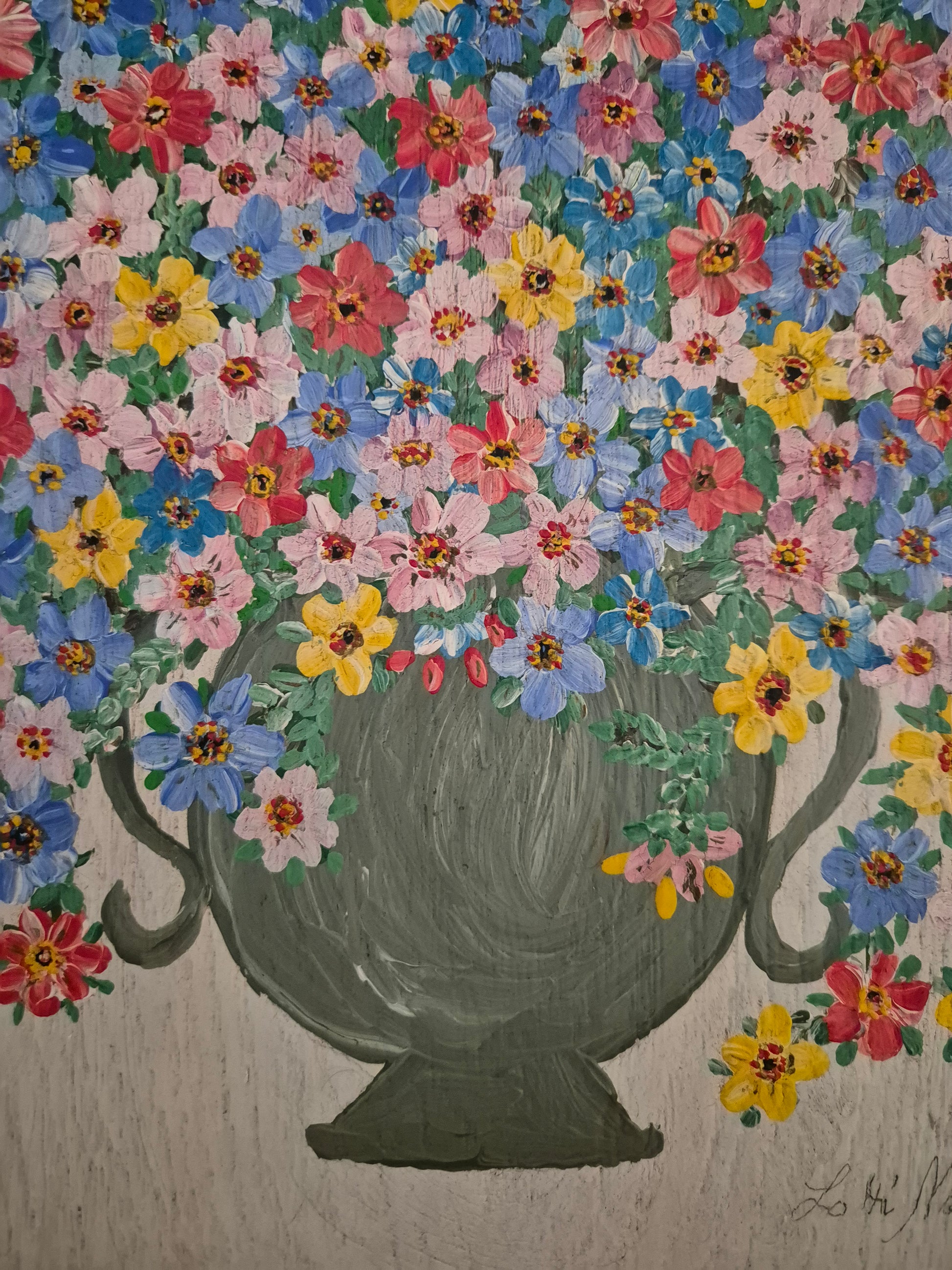 Die Komposition beeindruckt durch ihre harmonische Farbgebung und den dynamischen Pinselstrich, der dem Stillleben eine besondere Lebendigkeit verleiht. Das Gemälde fügt sich sowohl in moderne als auch in klassische Einrichtungen wunderbar ein und setzt dort elegante Akzente.