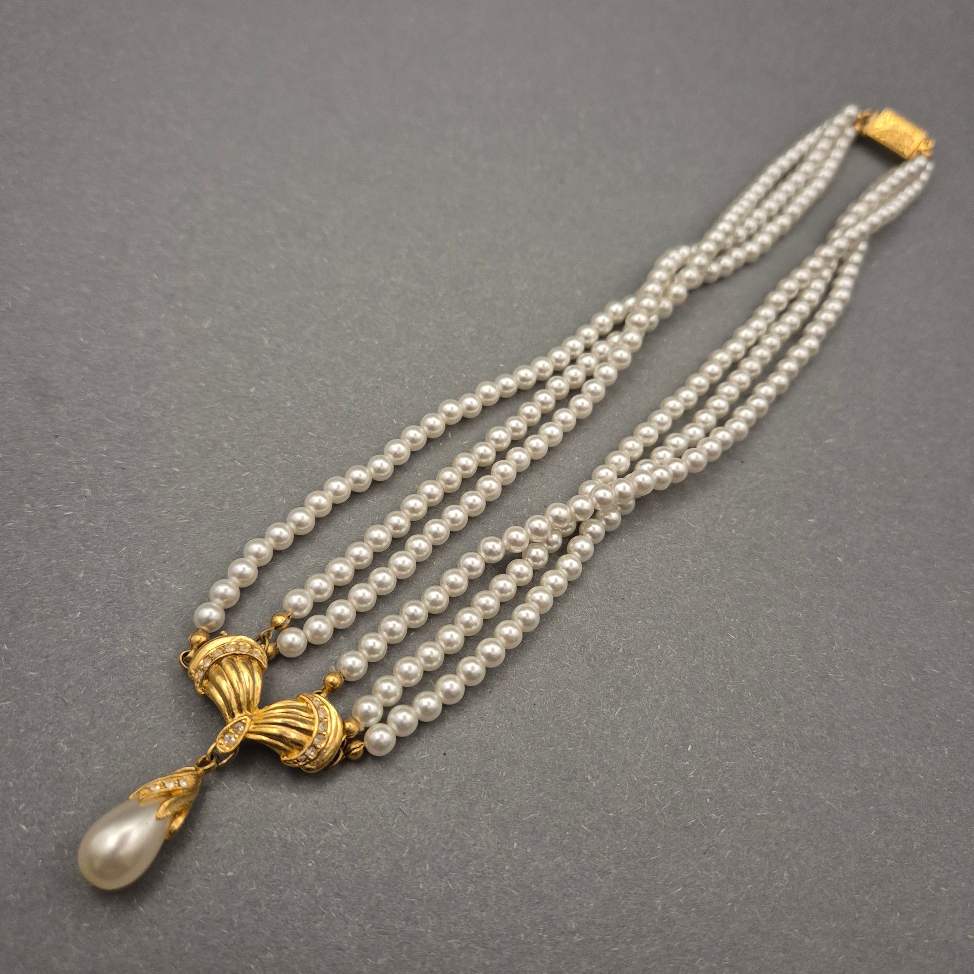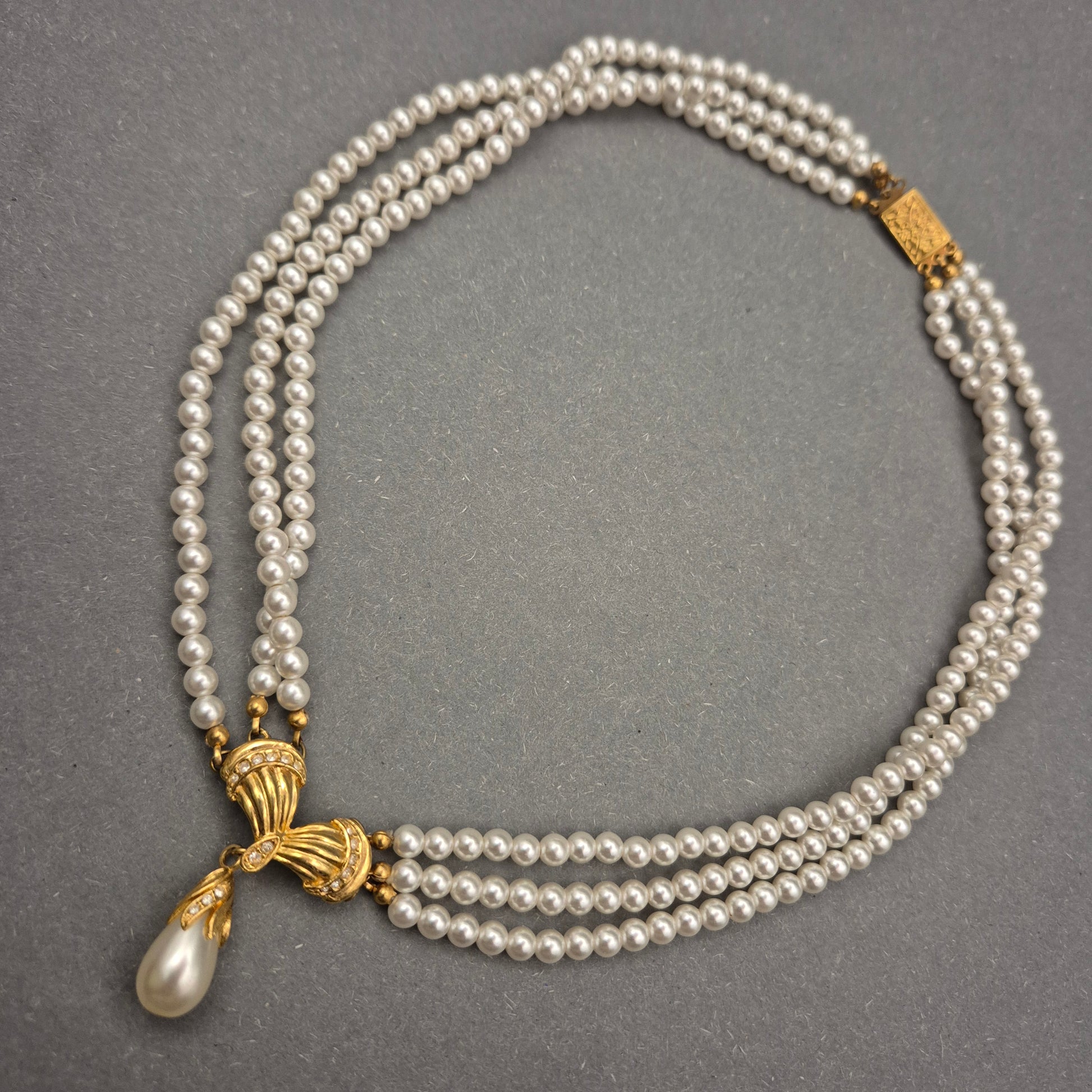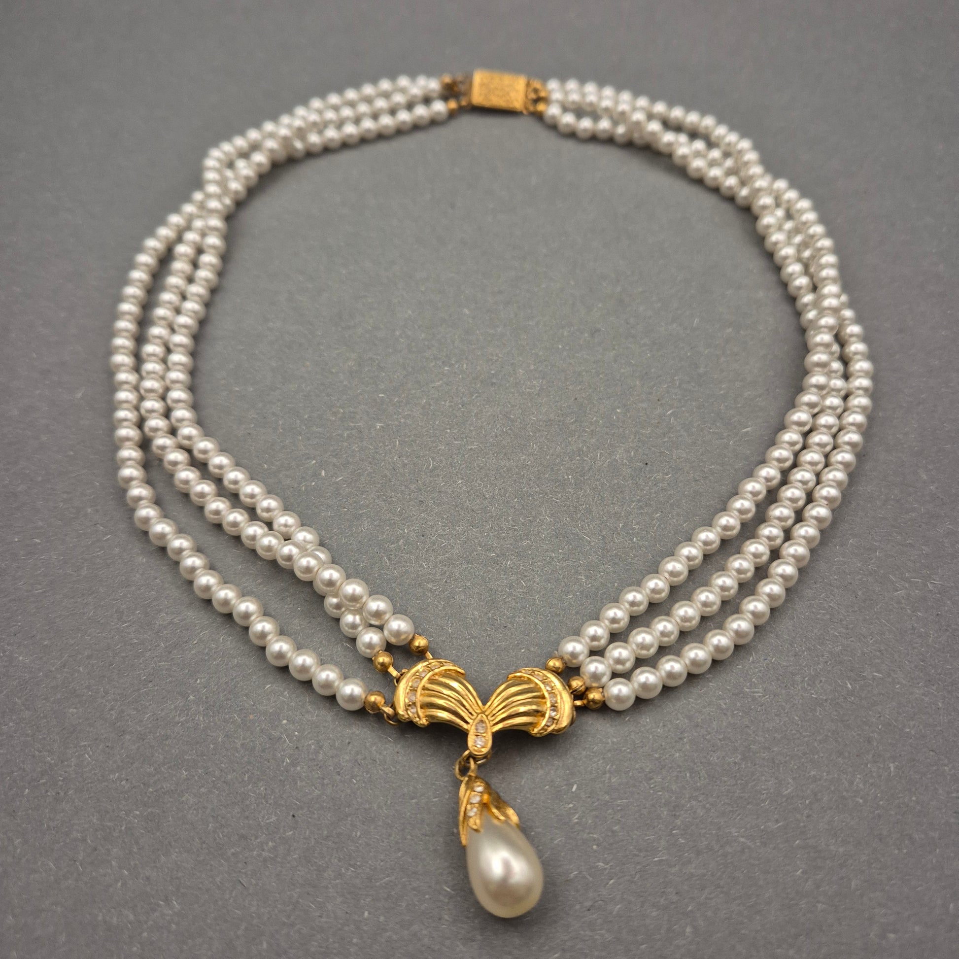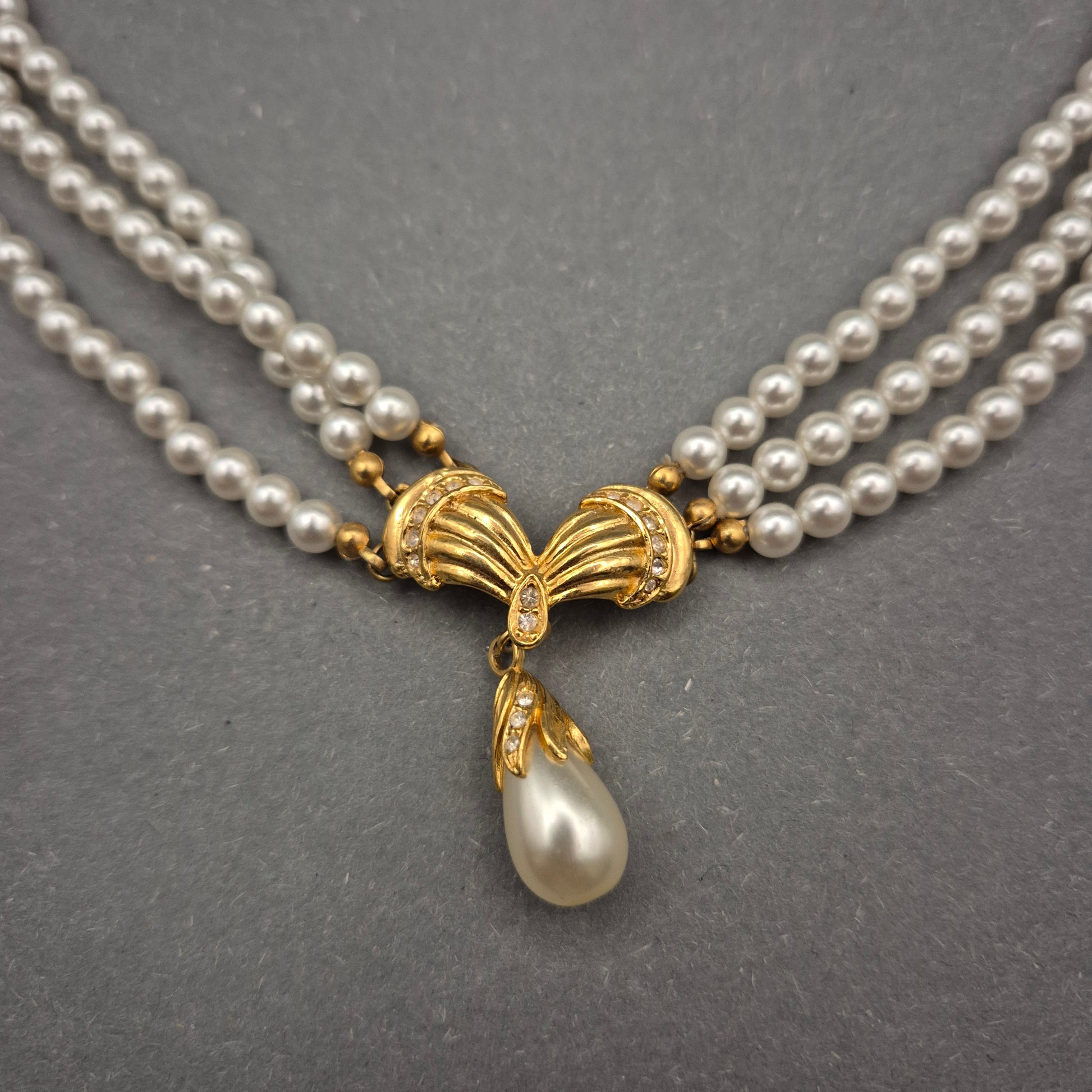 Dreireihige Perlenkette mit Tropfenanhänger – Eleganz im Vintage-Stil
