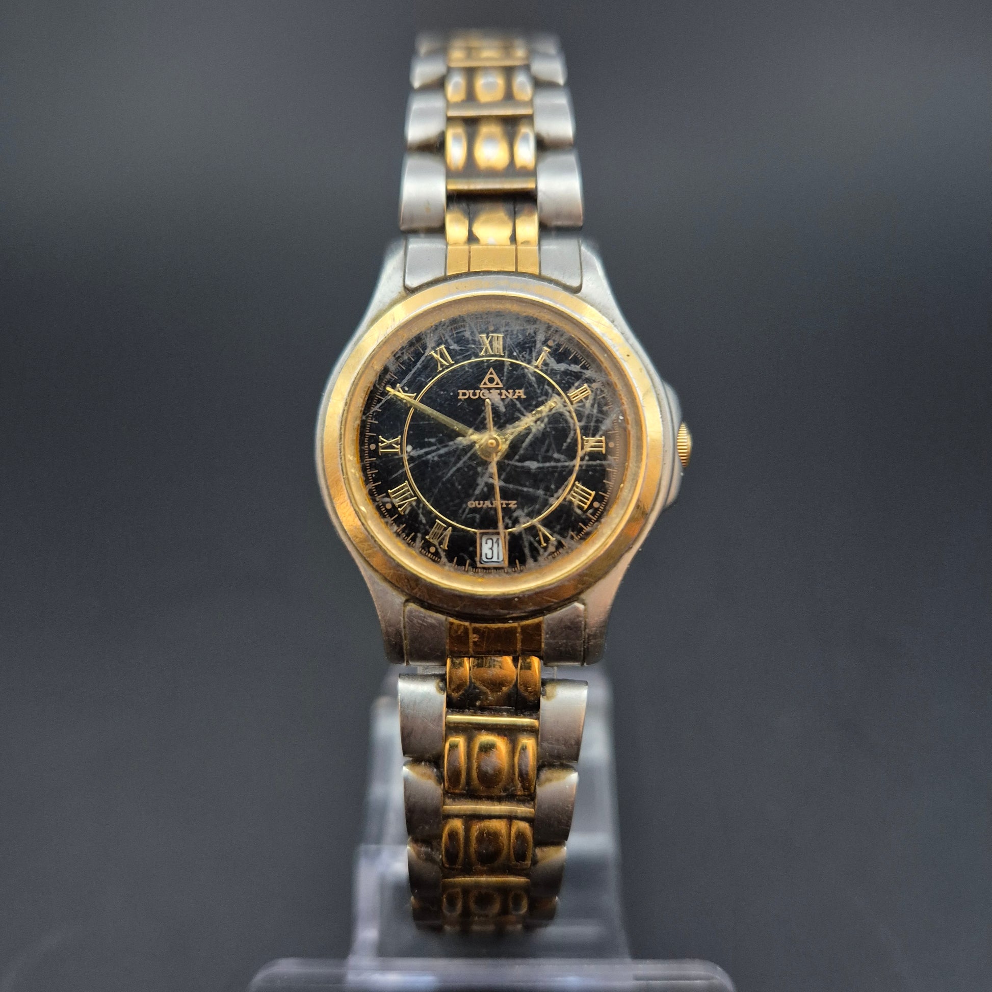 Dugena Damen Uhr – Bicolor Design mit schwarzem Zifferblatt