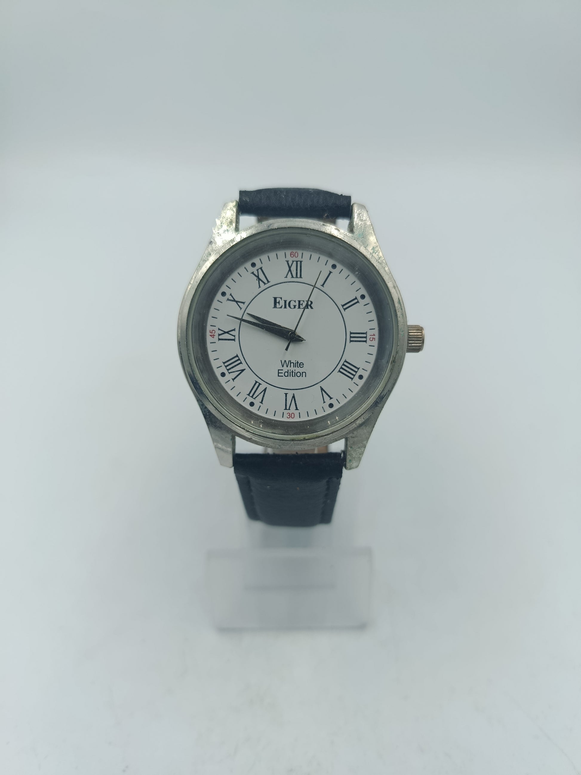Diese klassische Armbanduhr von Eiger überzeugt mit ihrem klaren, zeitlosen Design. Das weiße Zifferblatt mit römischen Ziffern sorgt für eine elegante Optik und gute Ablesbarkeit. Das schwarze Lederarmband bietet angenehmen Tragekomfort und unterstreicht den klassischen Stil. Ideal für Alltag und Büro sowie für Liebhaber schlichter Uhren.