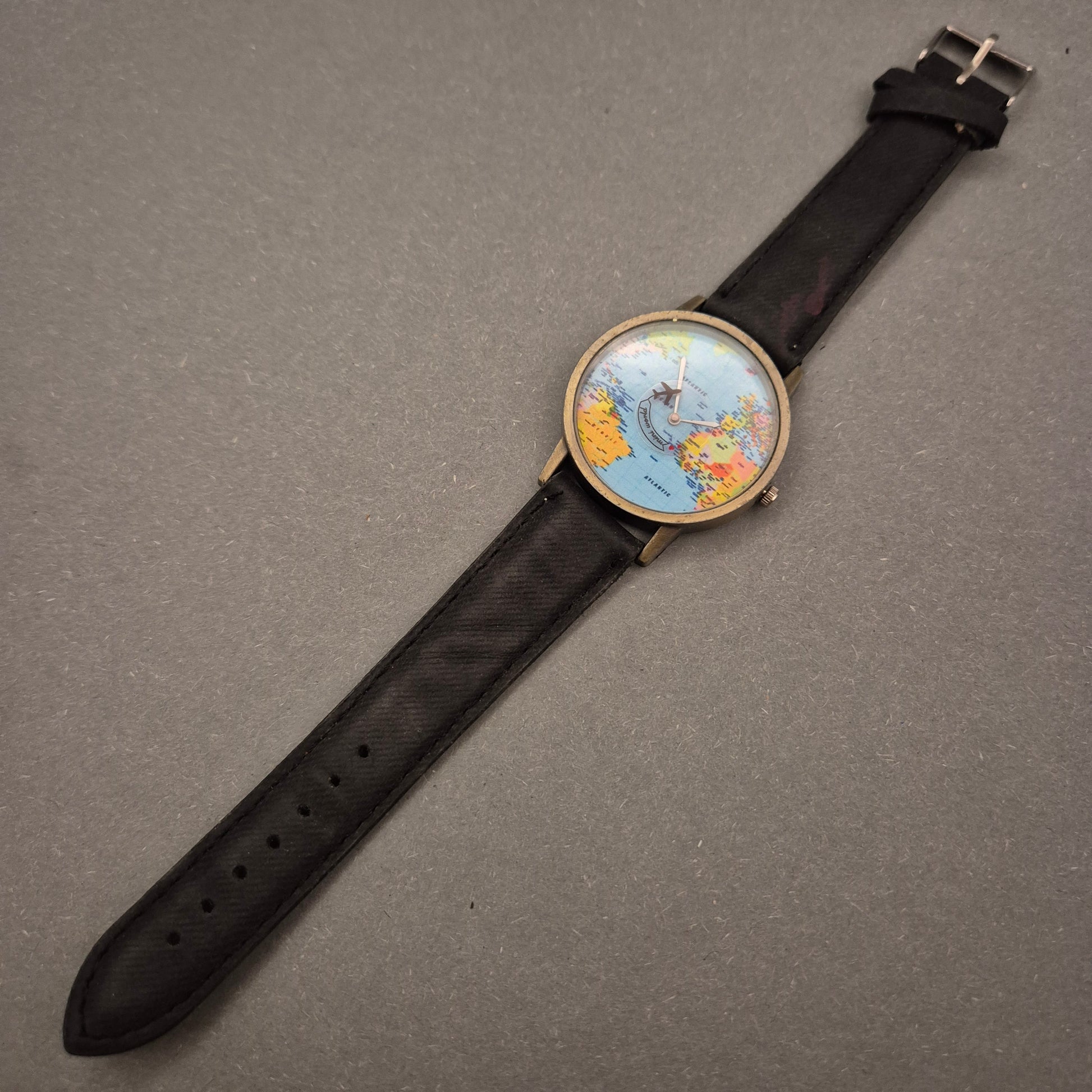• Einzigartiges Zifferblatt mit Weltkarten-Motiv