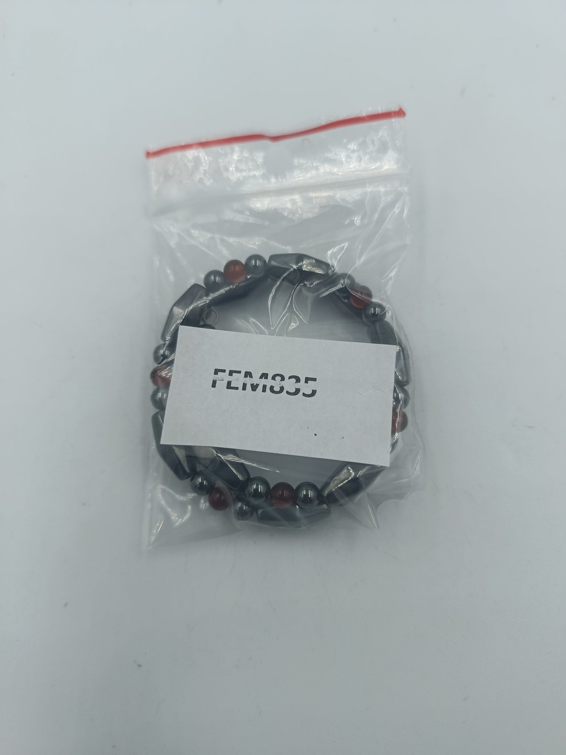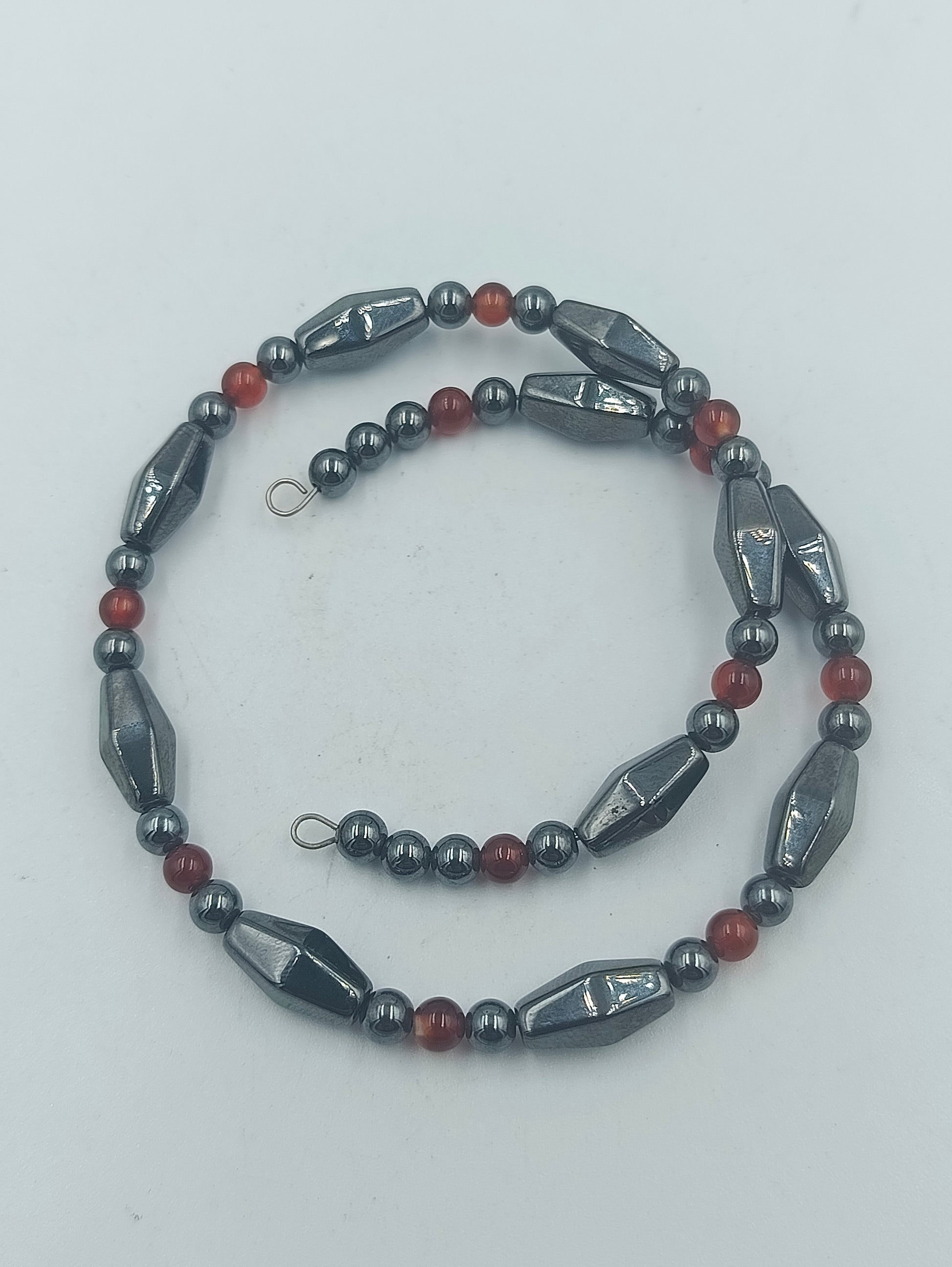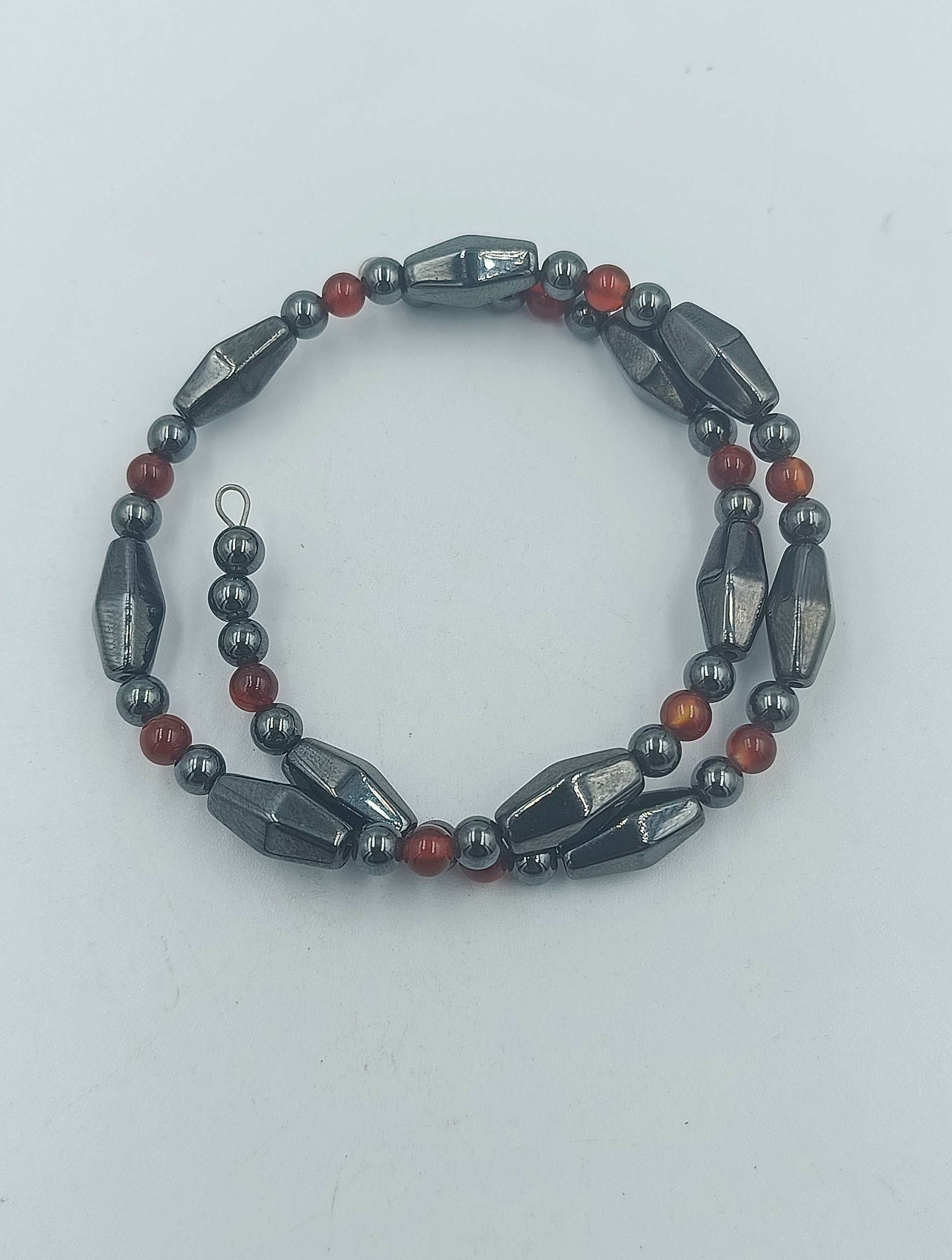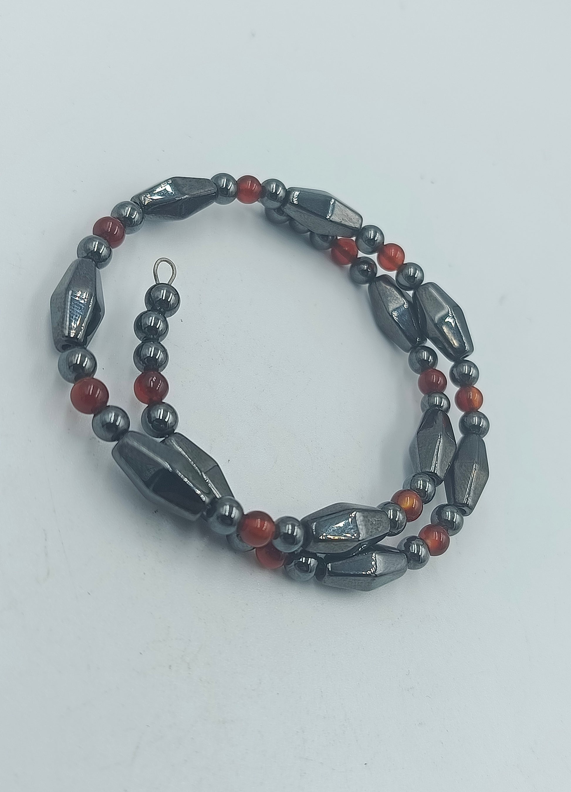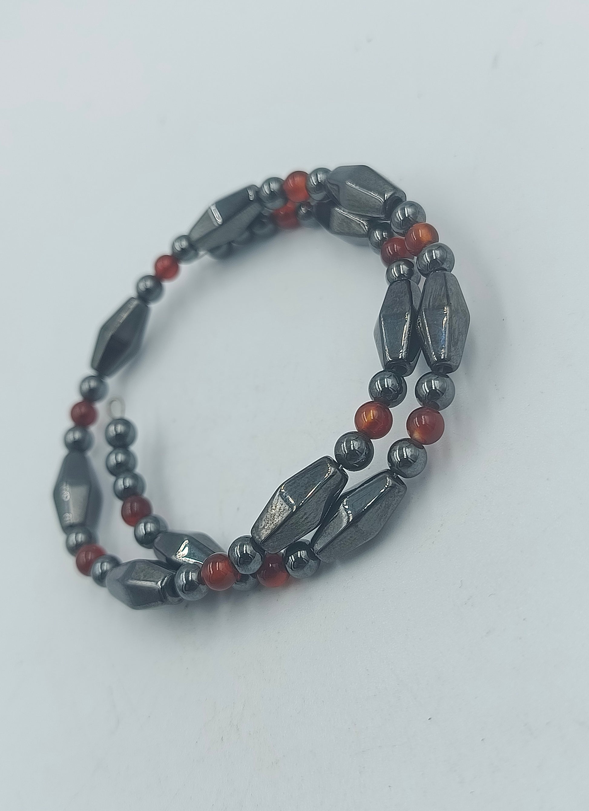 Stilvolles elastisches Armband aus glänzenden Hämatit-Perlen in Kombination mit roten Glasperlen. Das elegante Farbspiel aus Dunkelgrau und Rot sorgt für einen edlen, modernen Look – ideal für Damen und Herren.