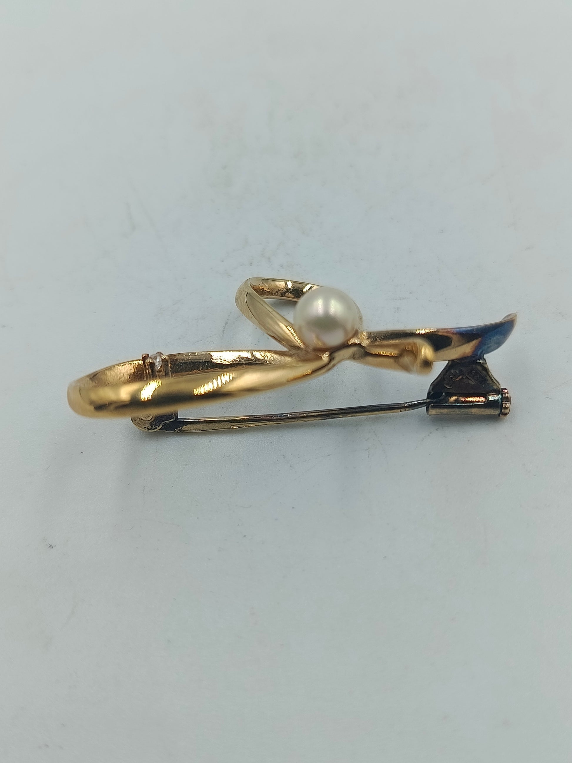 Das geschwungene Design in Schleifenform wird von einer eleganten weißen Perle und einem kleinen klaren Stein akzentuiert.